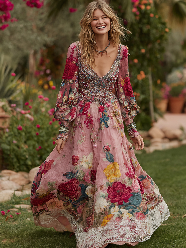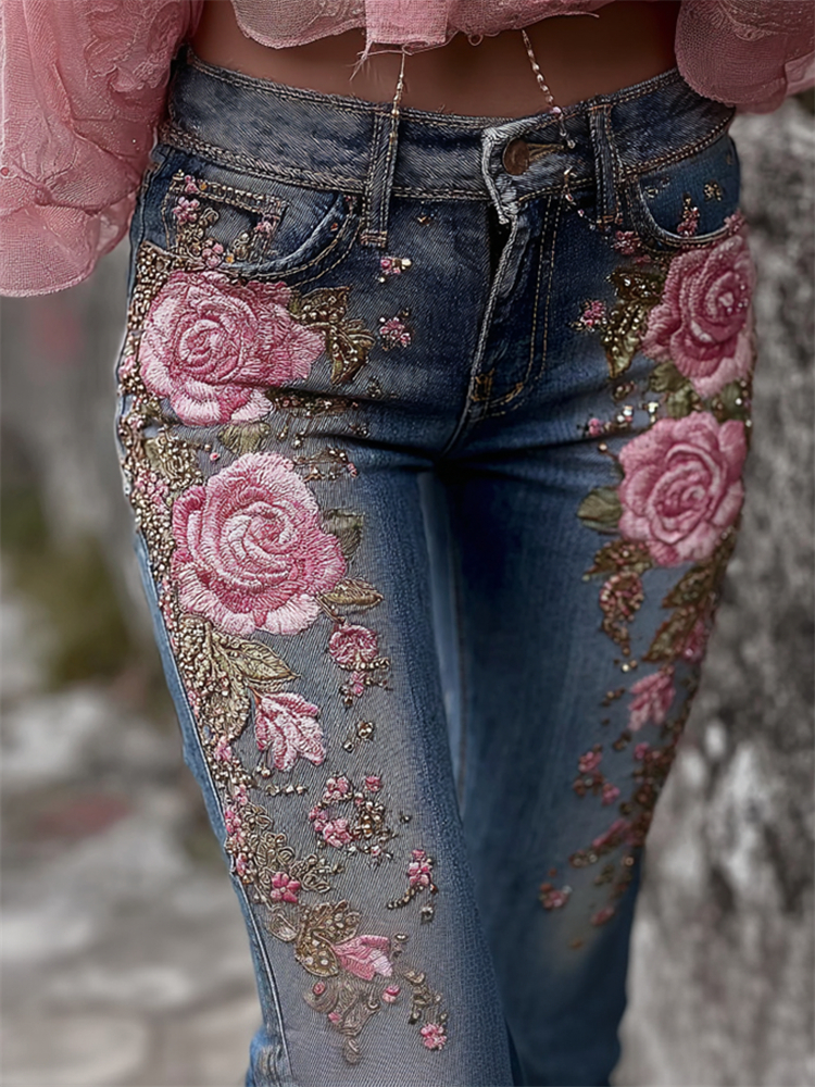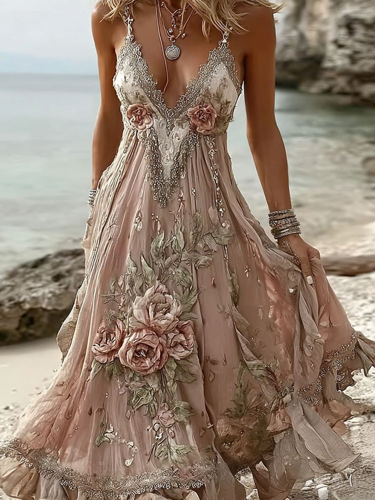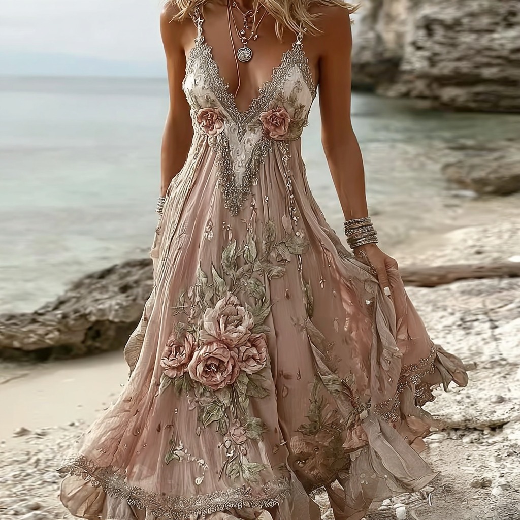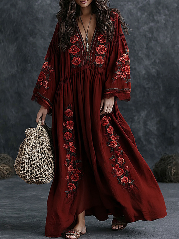Women's Rose Floral Embroidered Casual Dress$23.39 USD
