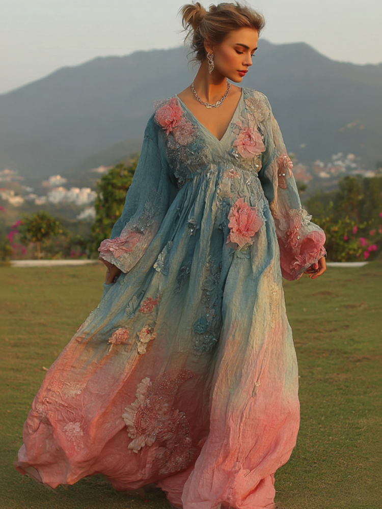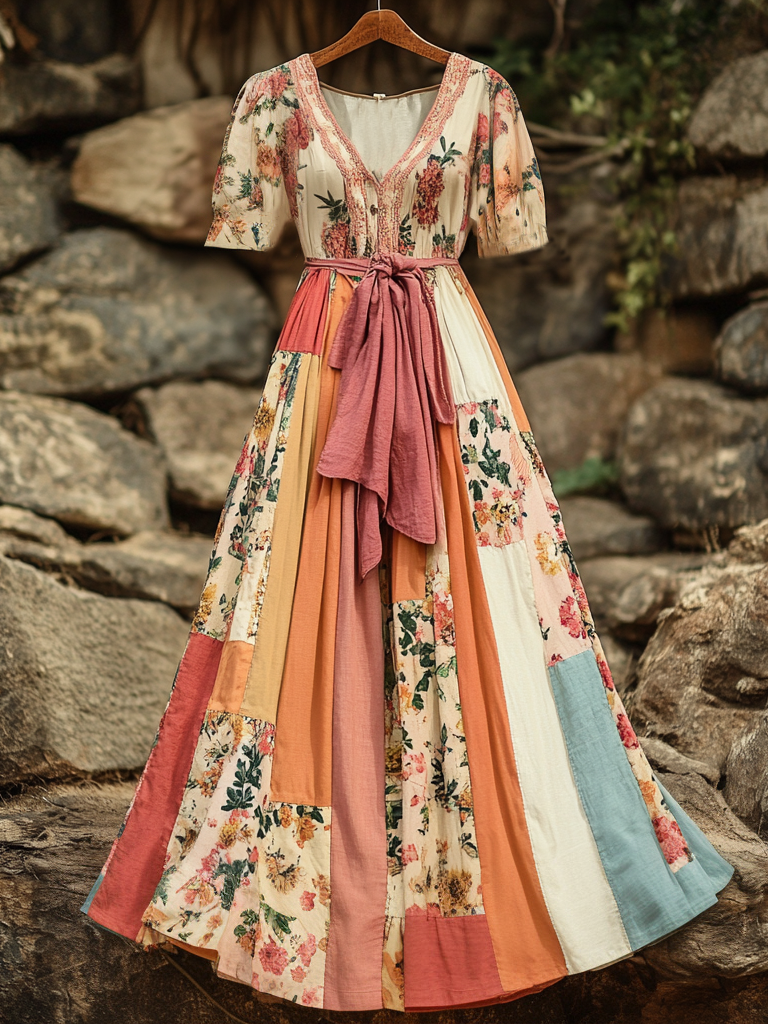 Women's Vintage Floral Art Linen Dress$21.67 USD