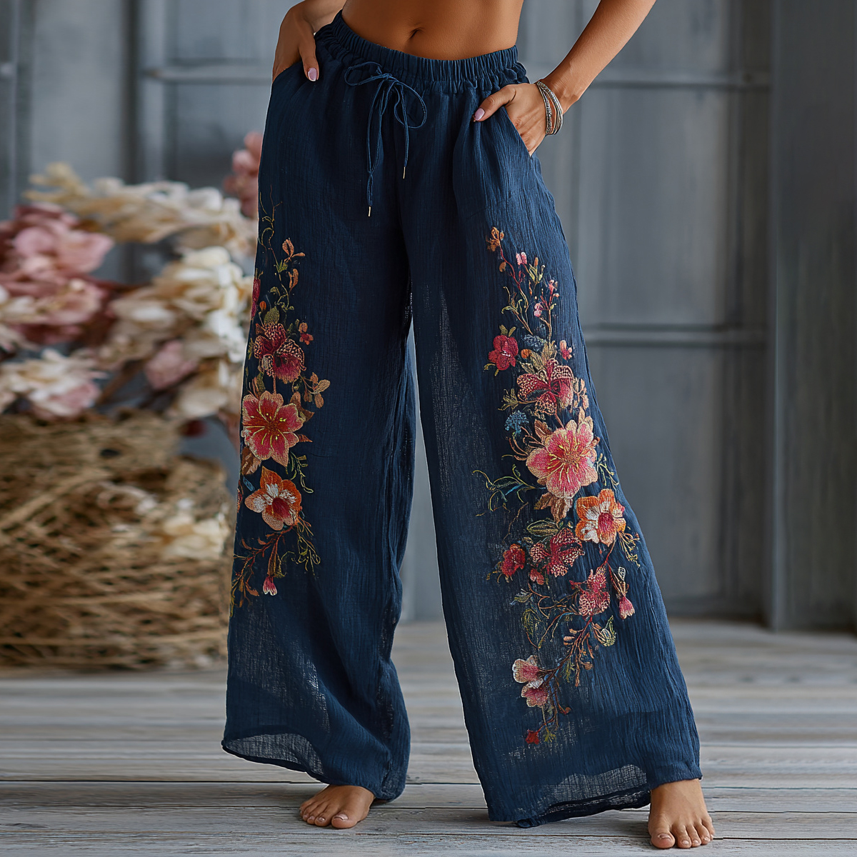 Women's Boho Floral Pattern Linen Pants$20.99 USD