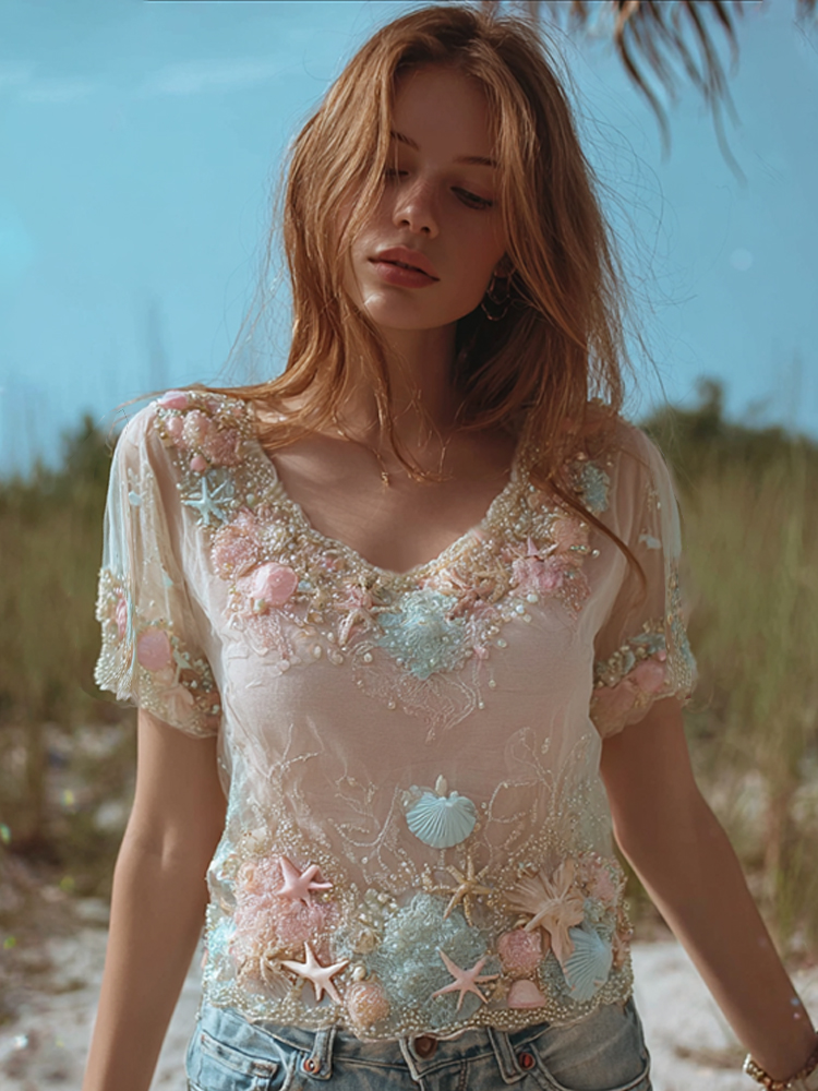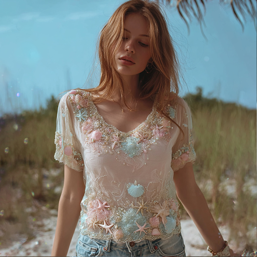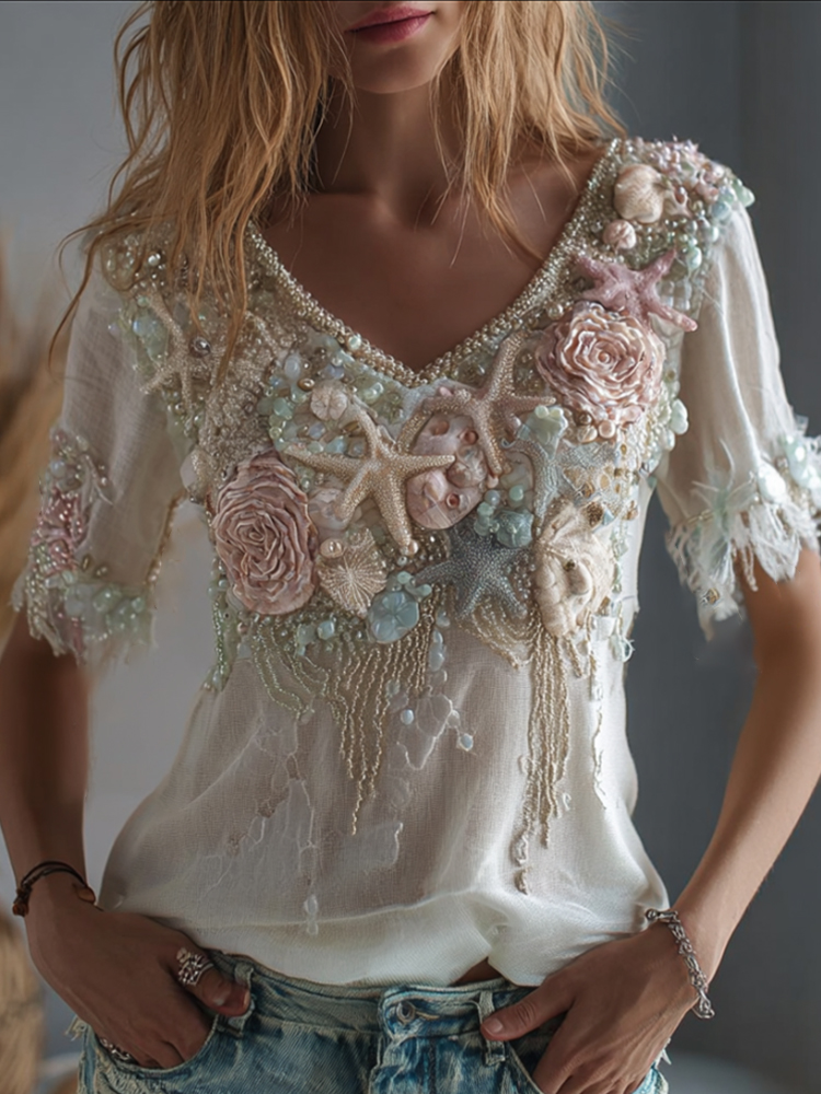 Bohemian Marine Elements Breathable V-neck Short Sleeves