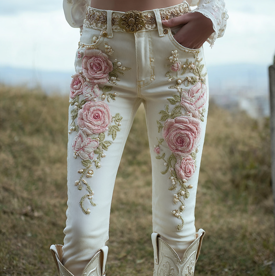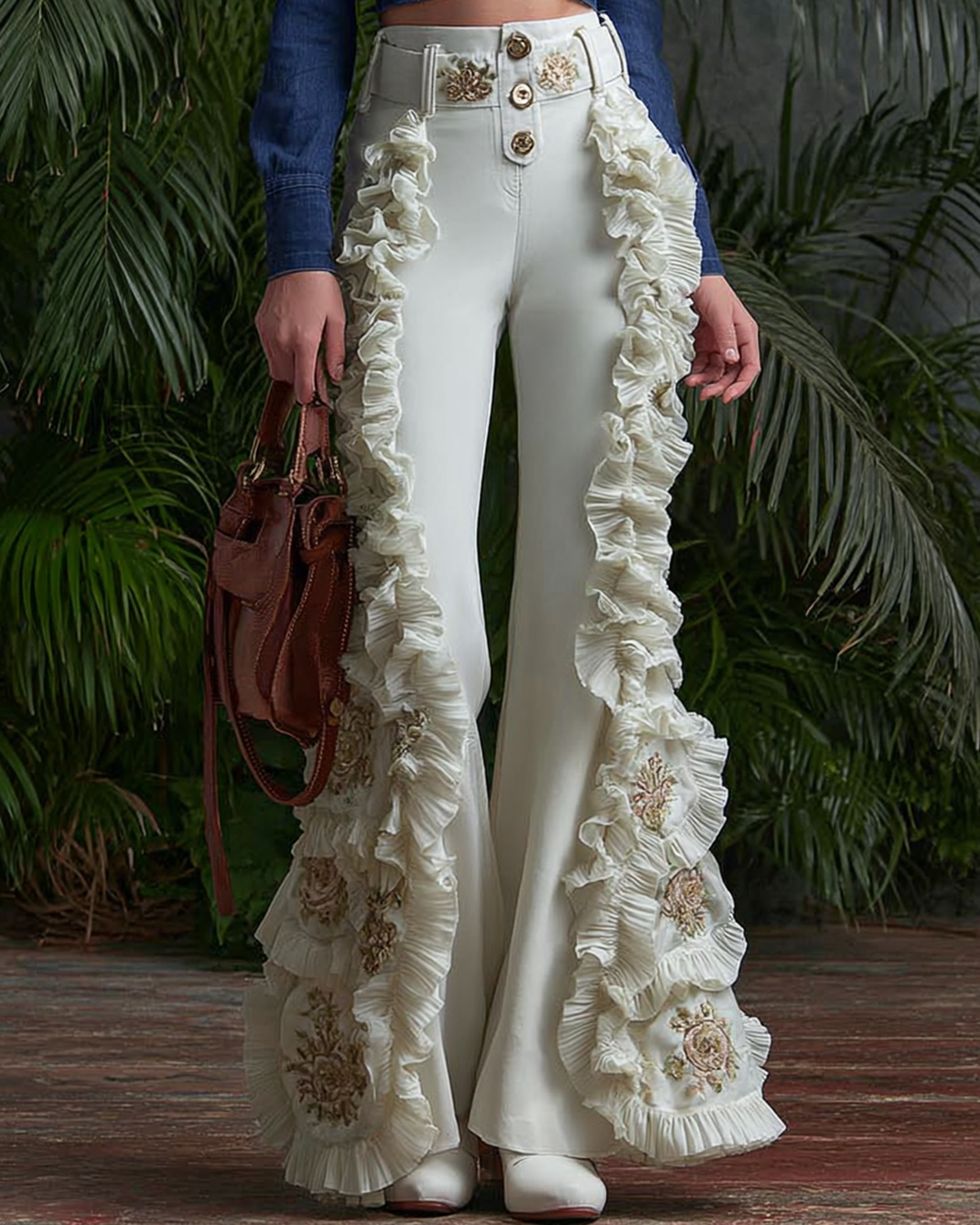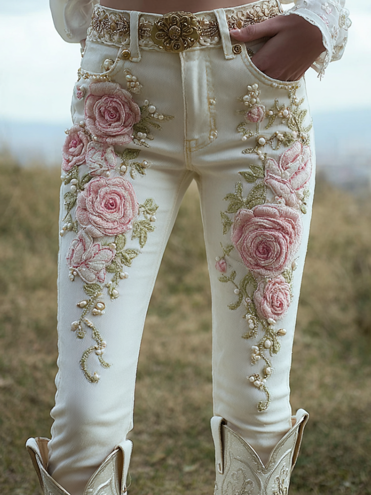 Women's Spring Floral Embroidered Design-Inspired Trousers 9016$17.13 USD$56.65 USD