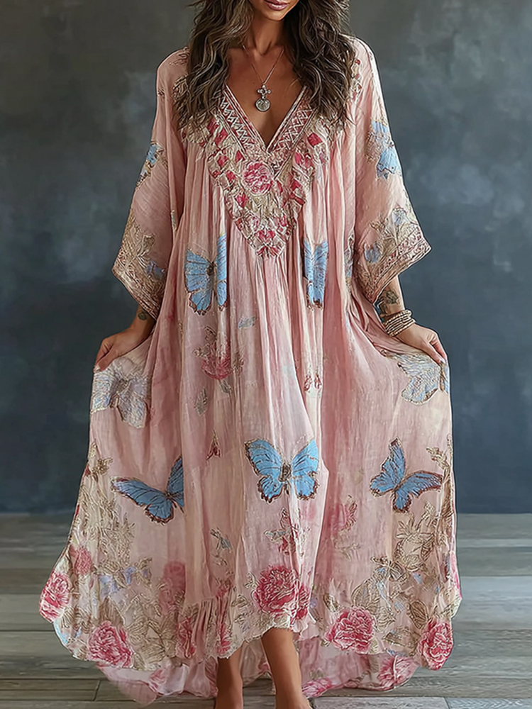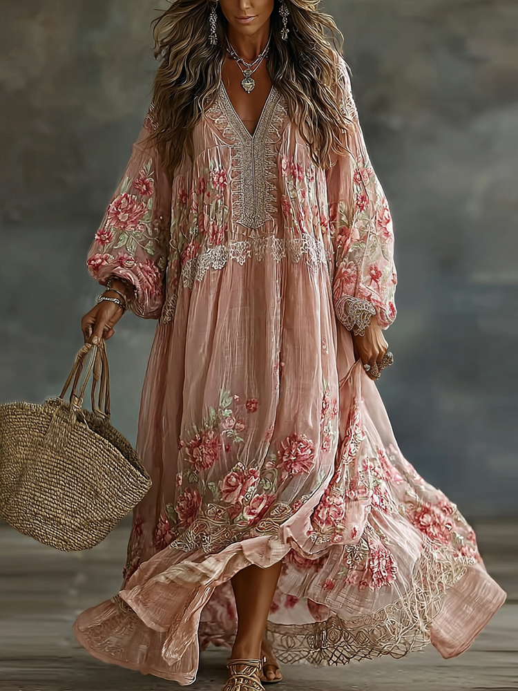 Boho Roses Glitter Lace Gradient Flowy Tunic$13.79 USD