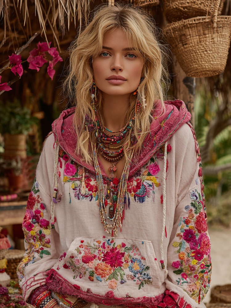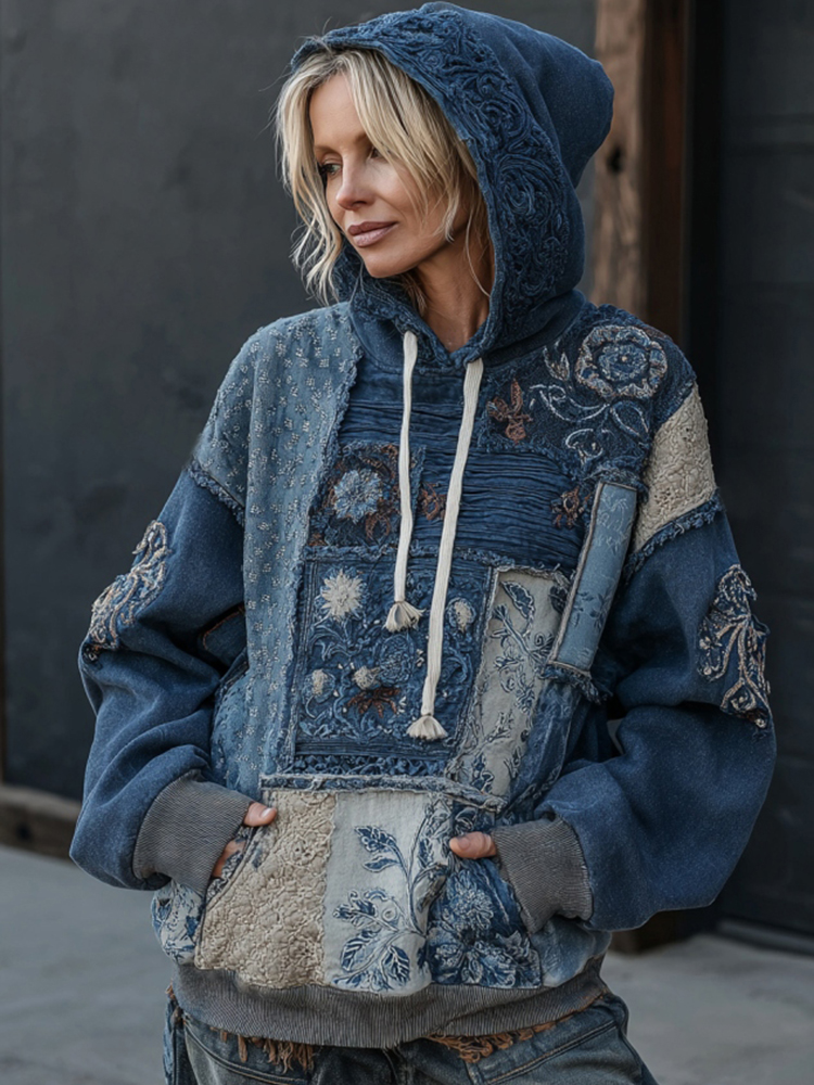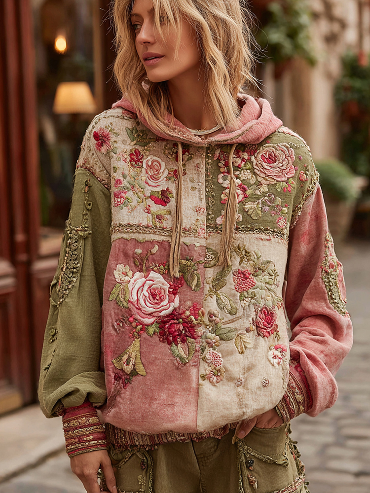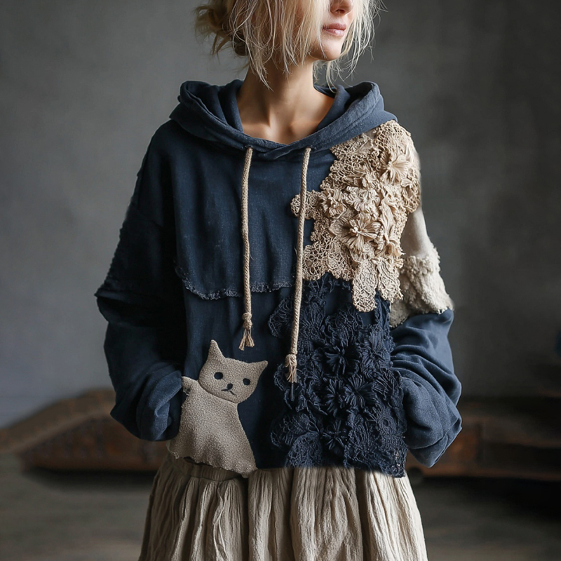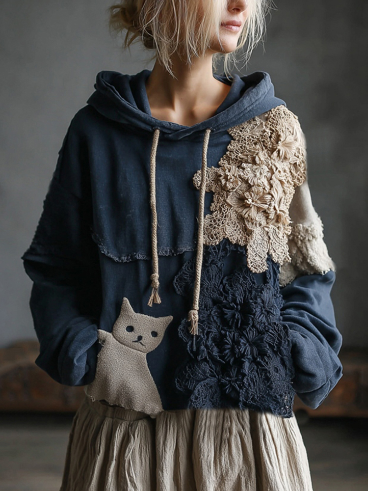 Lovely Cat Boho Floral Lace Patchwork Hoodie$15.62 USD