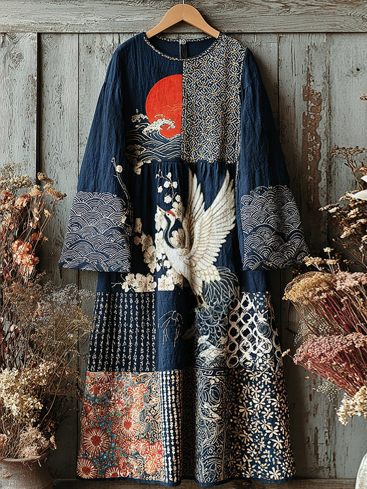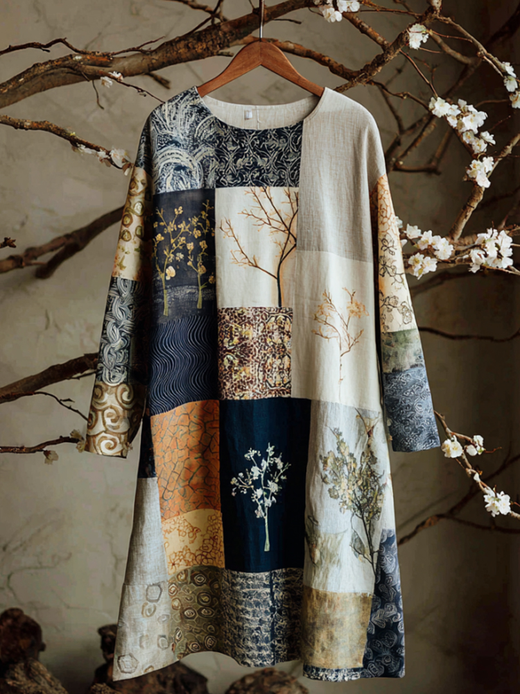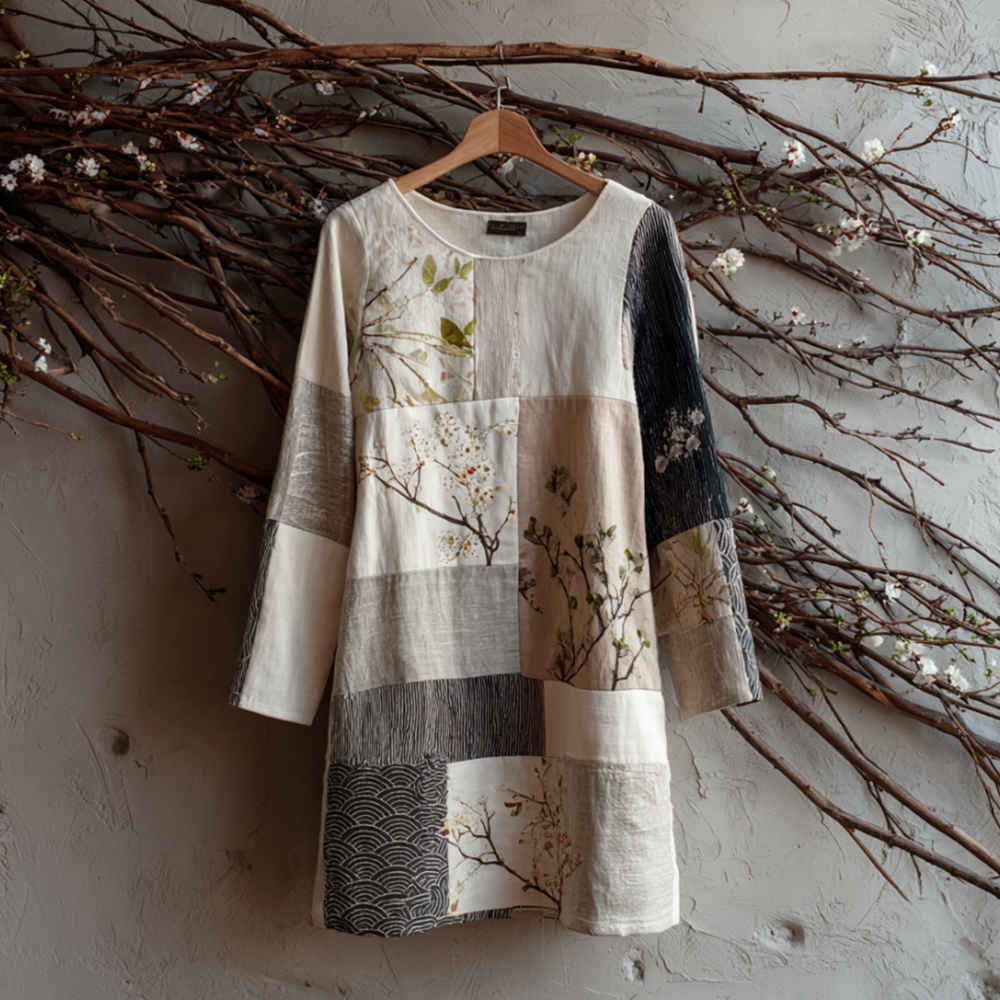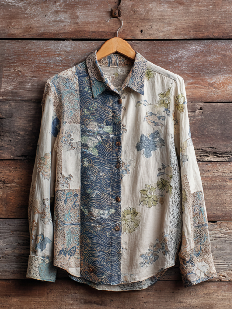 Women's Floral Pattern Linen V-neck T-shirt$19.19 USD