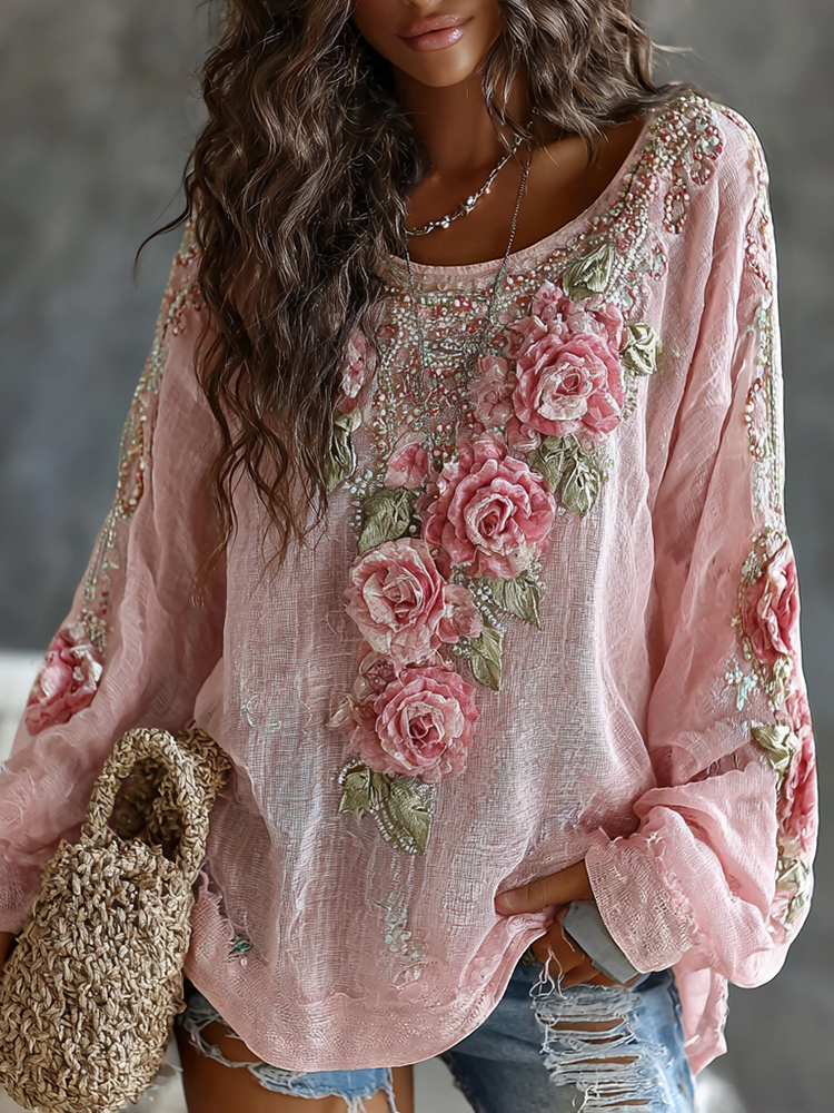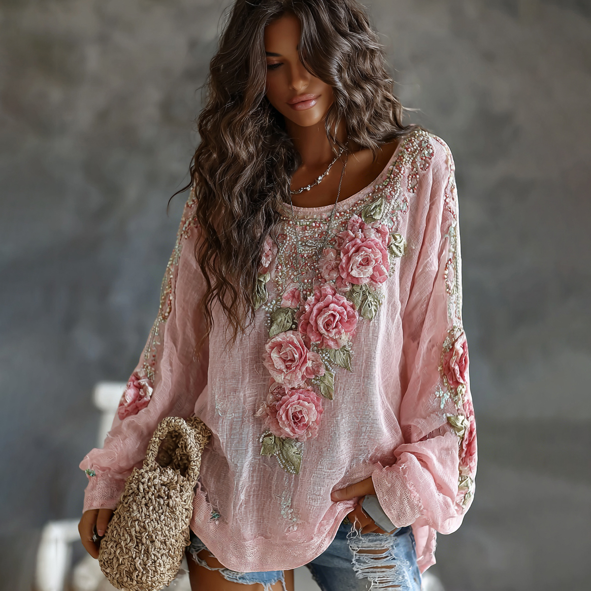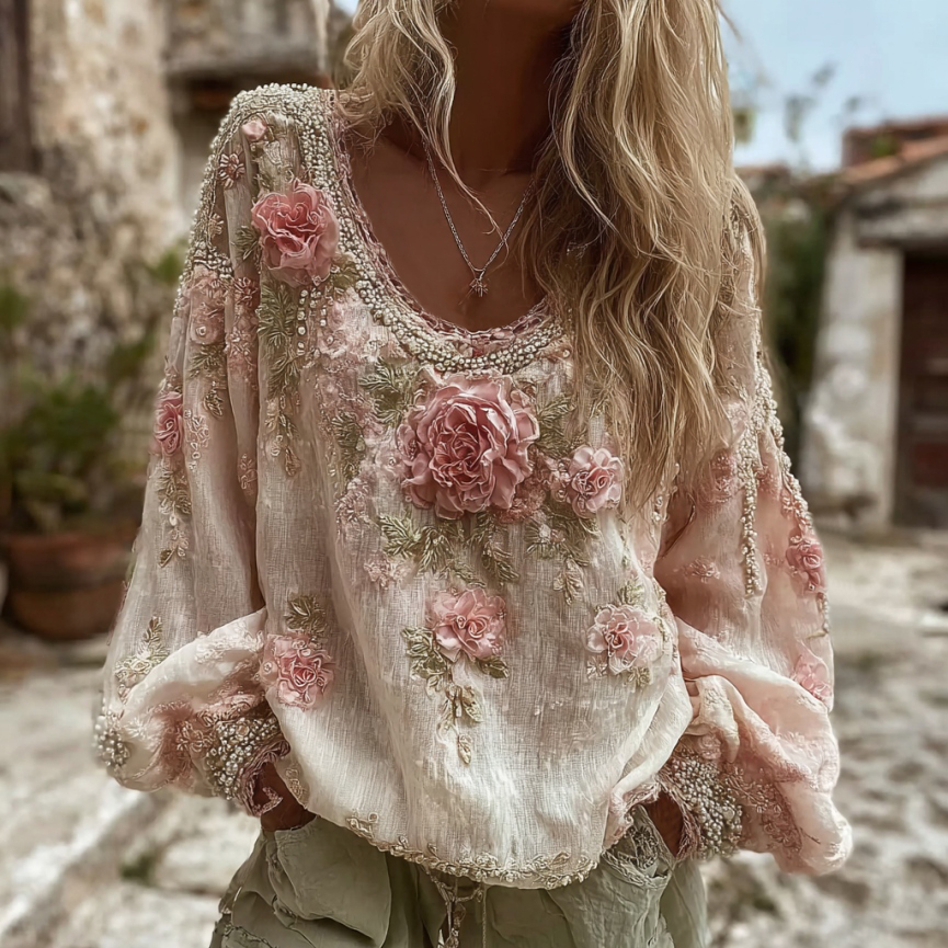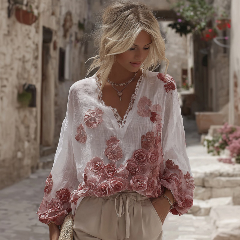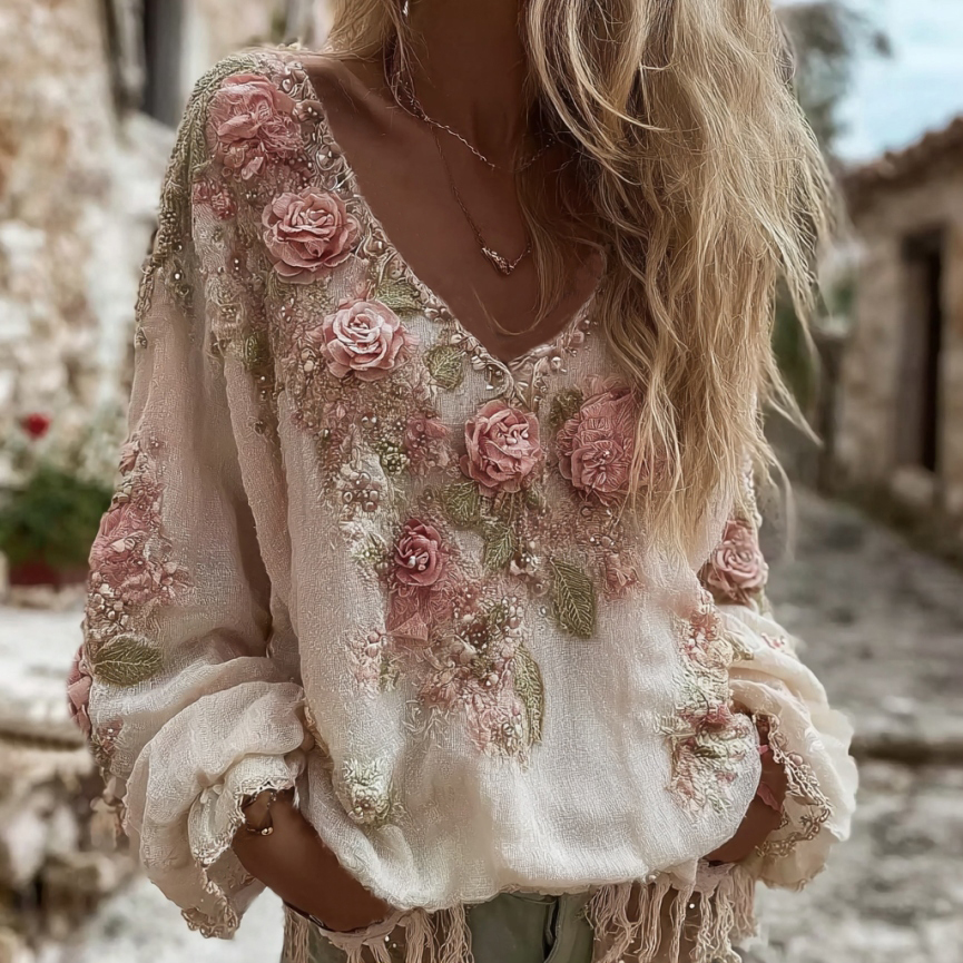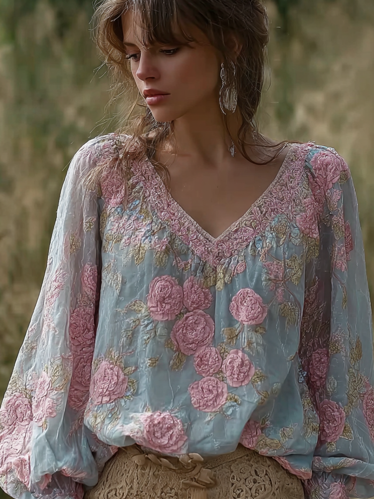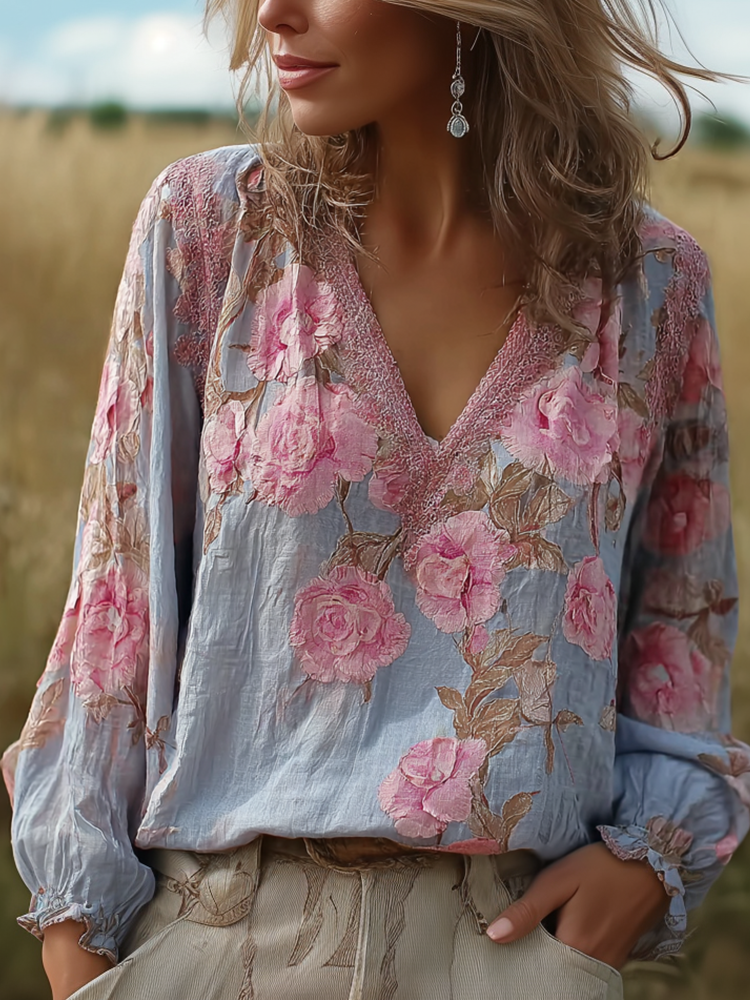 Mysterious Sun And Moon Art V-neck Linen Top$17.39 USD