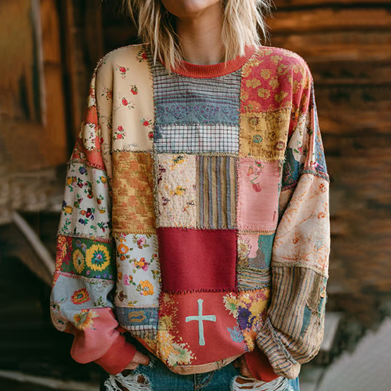 Women's Cross Floral Patchwork Cozy Sweatshirt