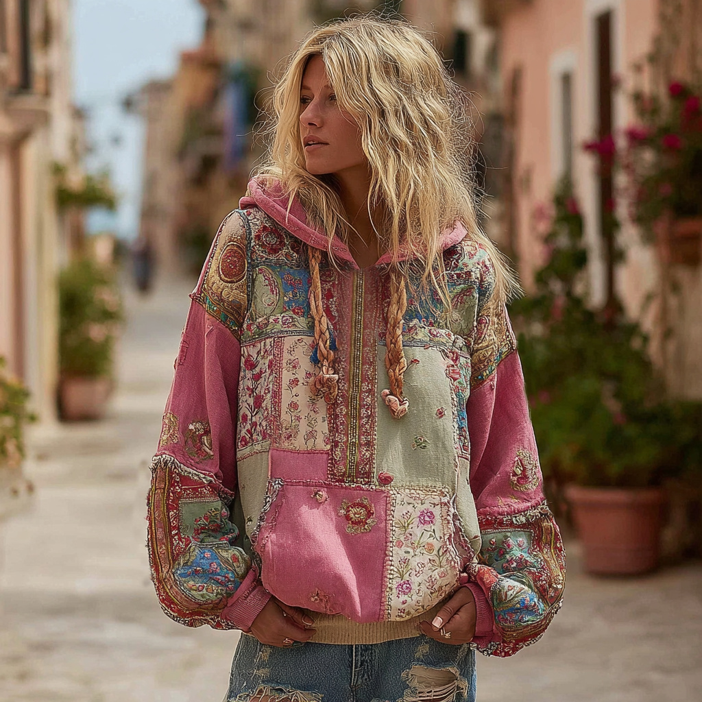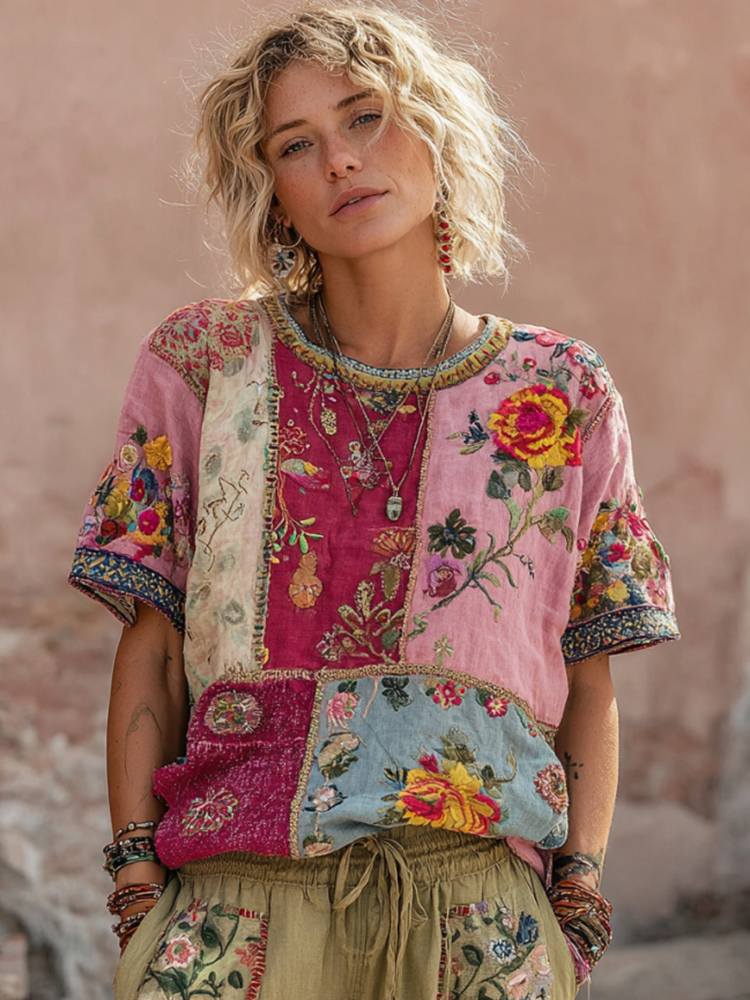 Women's Retro Floral Stitching Casual Pants$16.63 USD