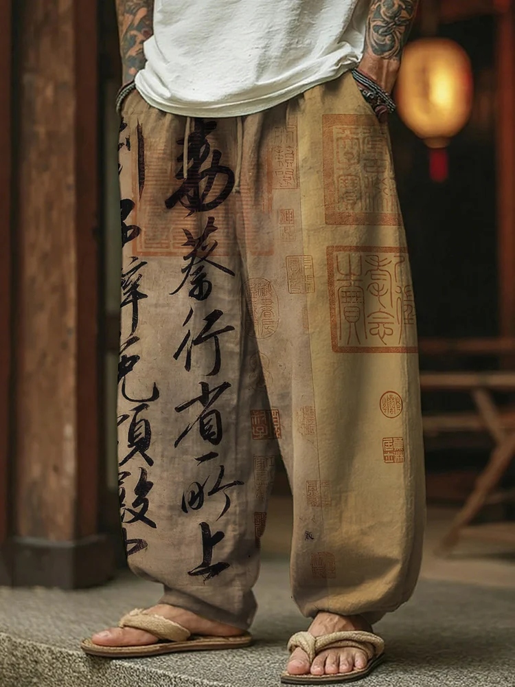 Men's Retro Calligraphy Art Print Casual Pants$21.38 USD$64.00 USD