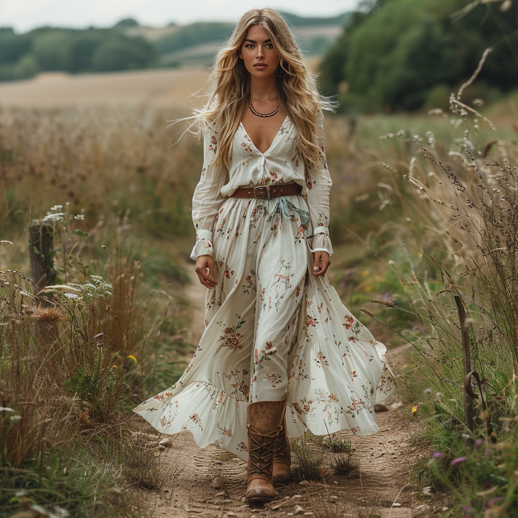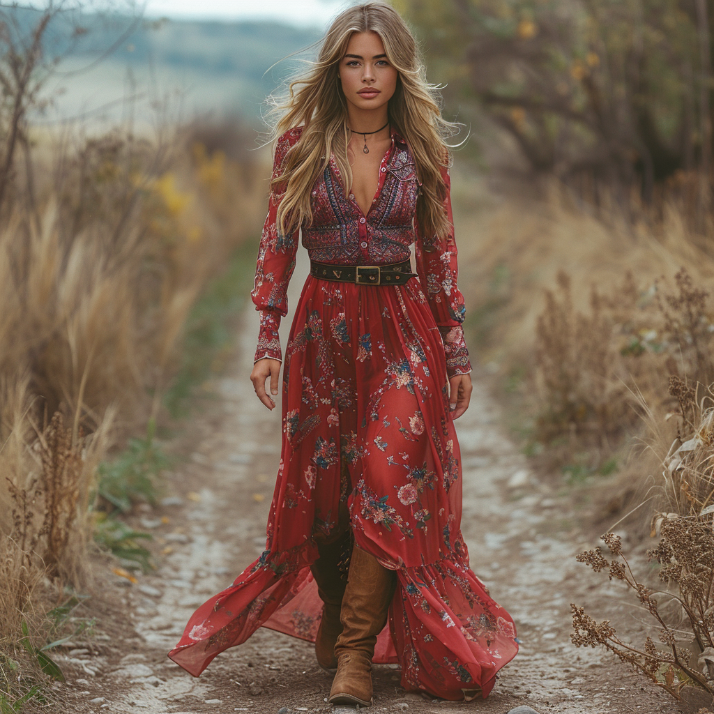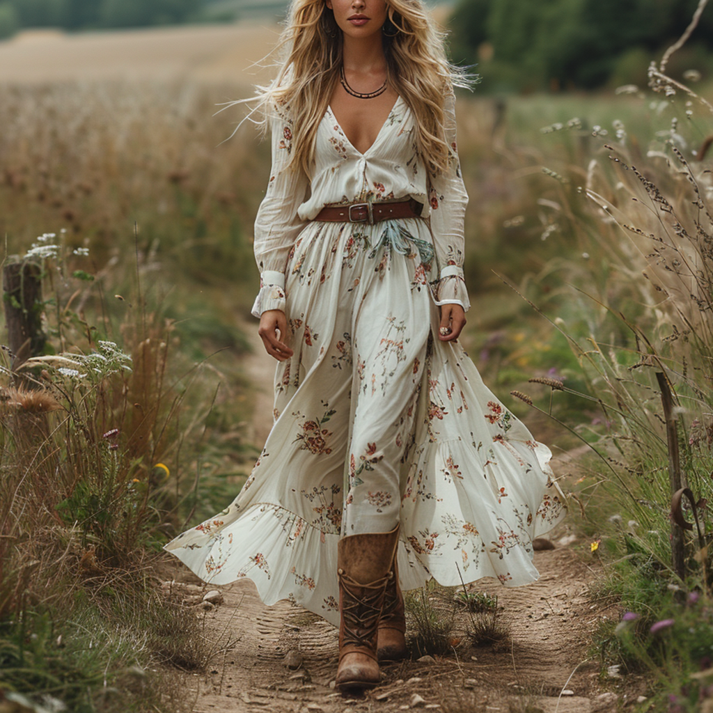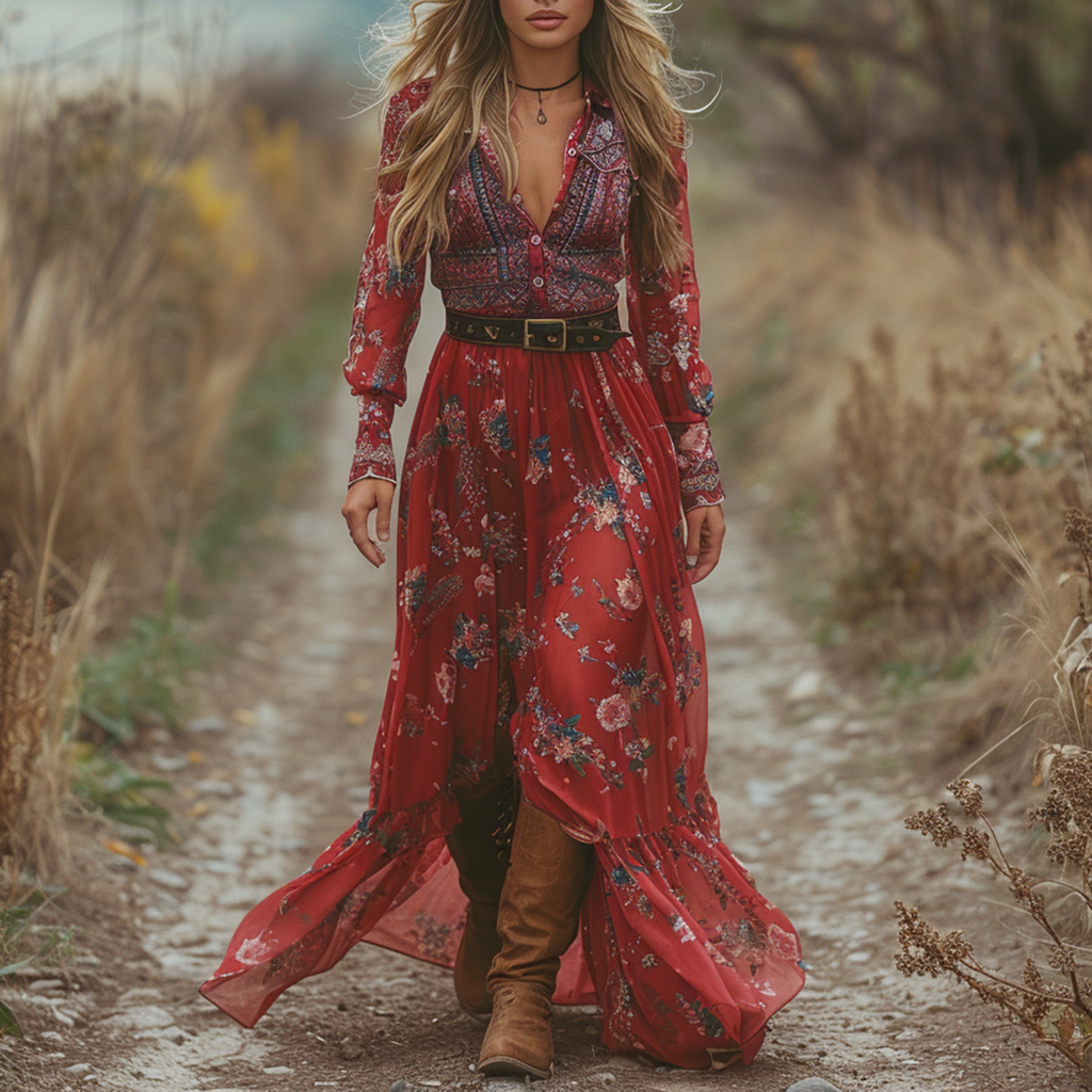 Women's Elegant Bohemian Pastoral Style Maxi Long Dress