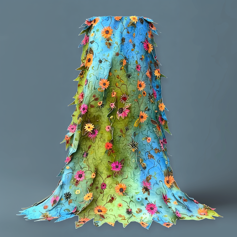 Rainbow Linen Ruffle Daisy Embroidery Irregular Dress 4d6d$31.49 USD$84.25 USD