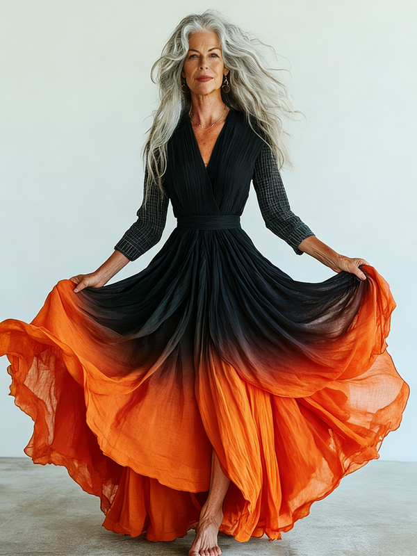 Embroidered Retro Loose Embroidered Printed Contrast Color Dress6414$27.29 USD$64.98 USD