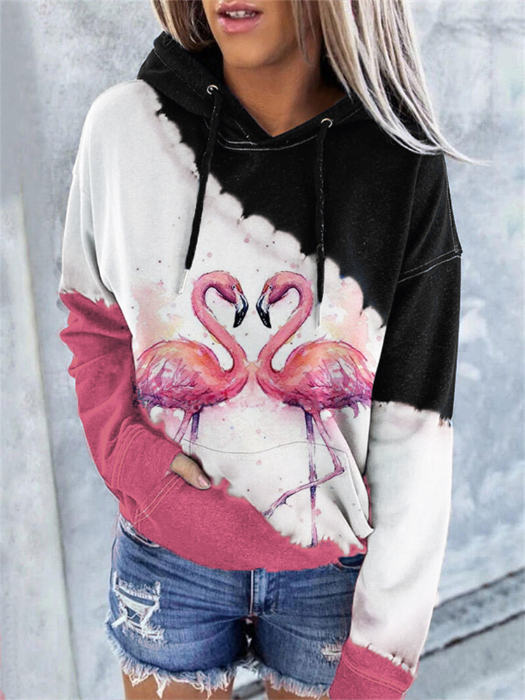 Love Heart Flamingo Contrast Tie Dye Hoodie$23.19 USD