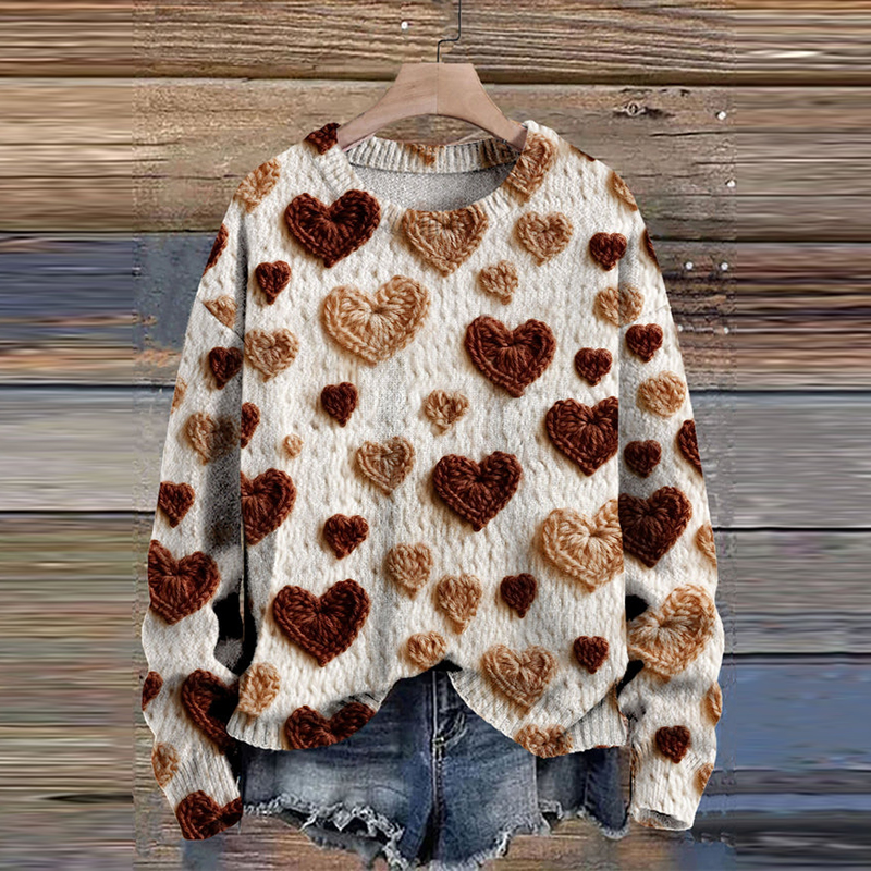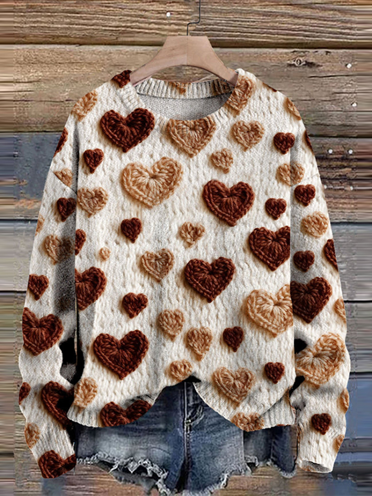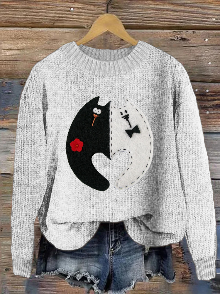 Love Cat Print Crew Neck Cozy Sweater$25.59 USD