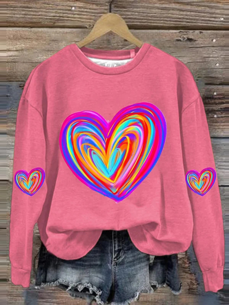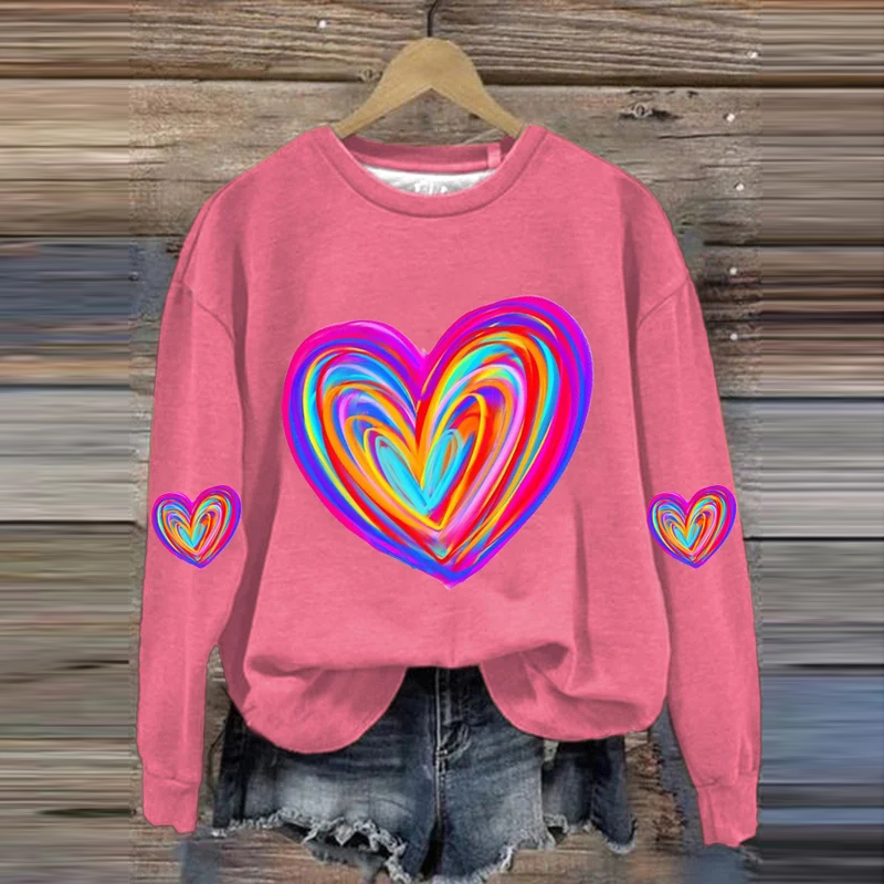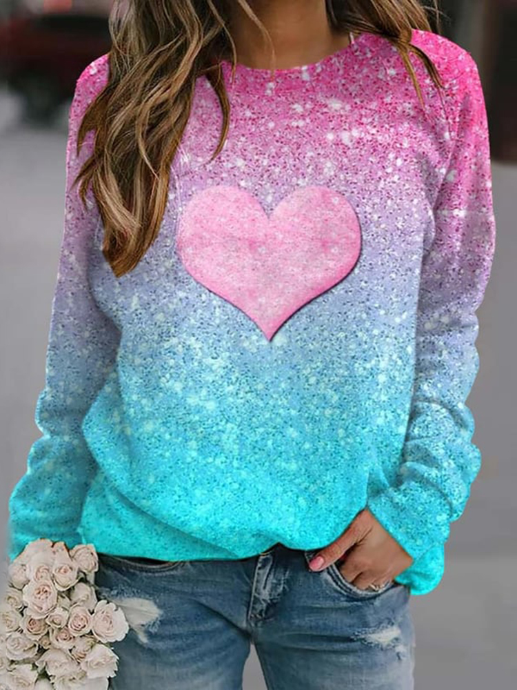 Heart Gradient Print Long Sleeve Sweatshirt$21.59 USD