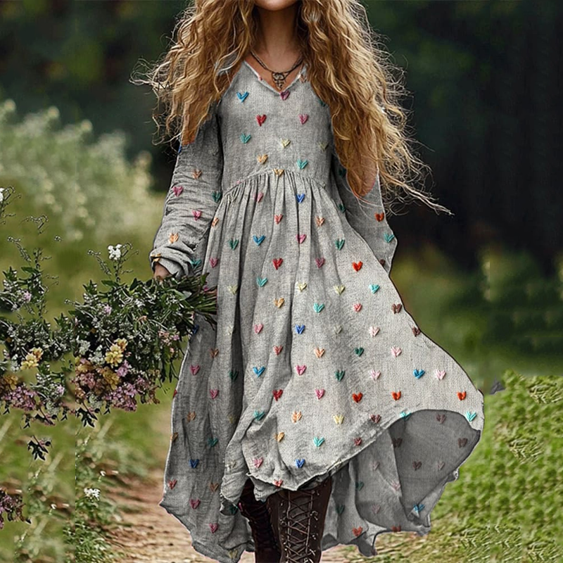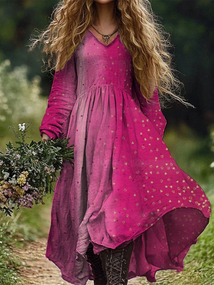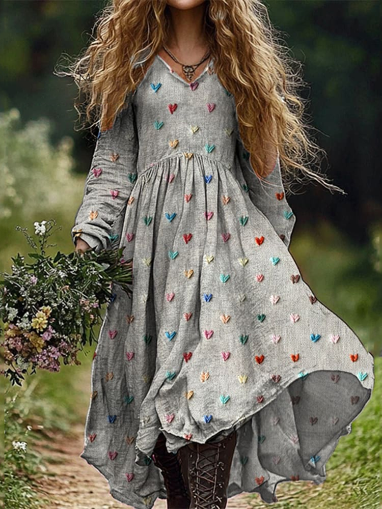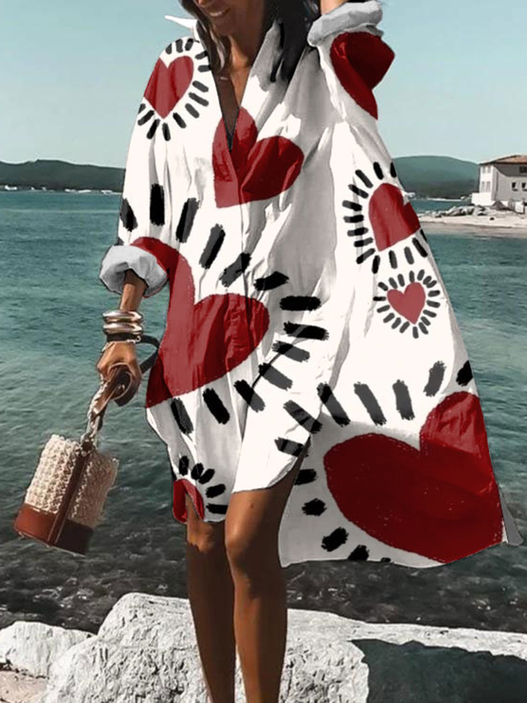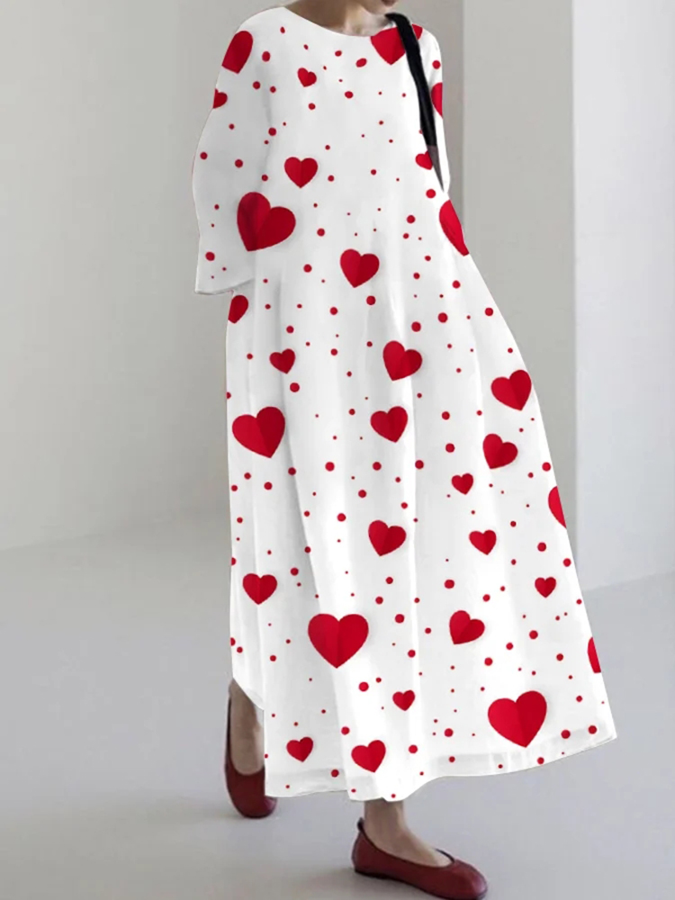 Loose Heart Print Long Sleeve Midi Dress$28.79 USD