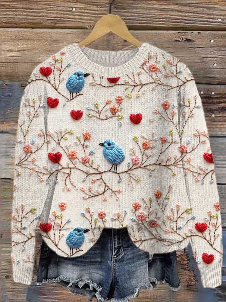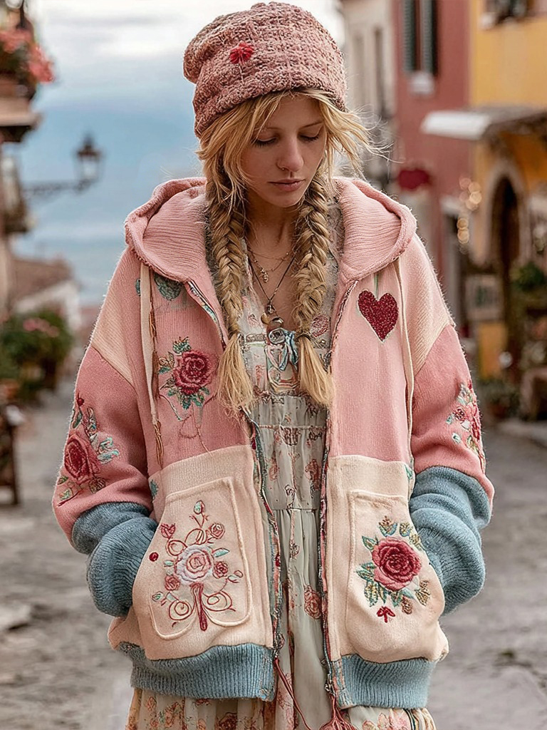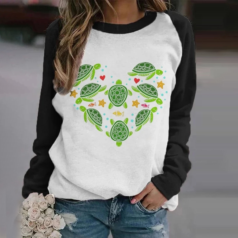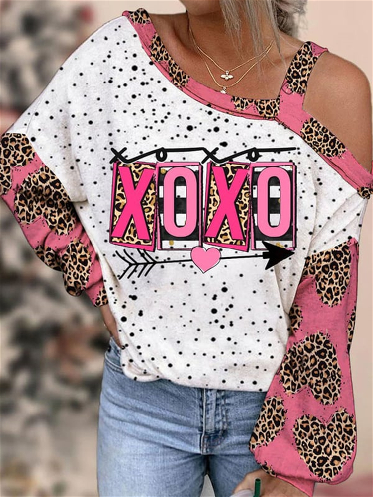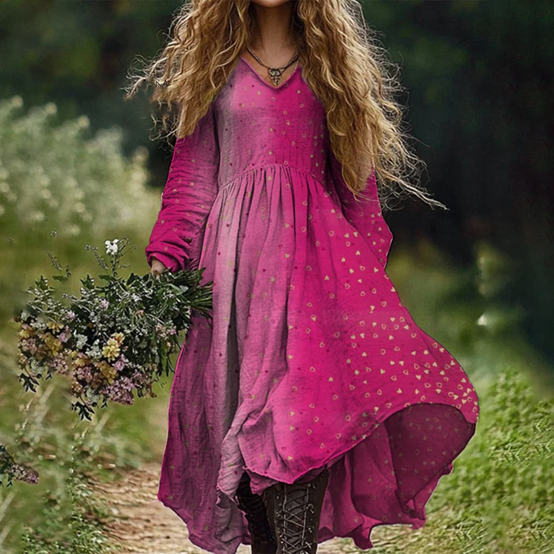 Loose Heart Print Long Sleeve Midi Dress$28.79 USD