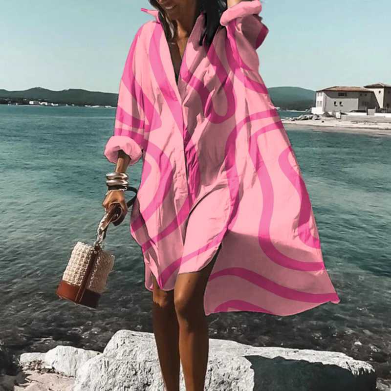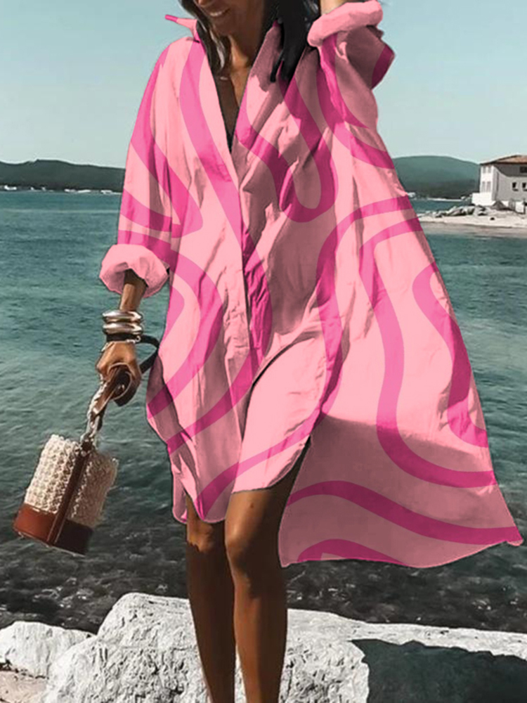 Abstract Line Print Long Sleeve Midi Dress$28.79 USD