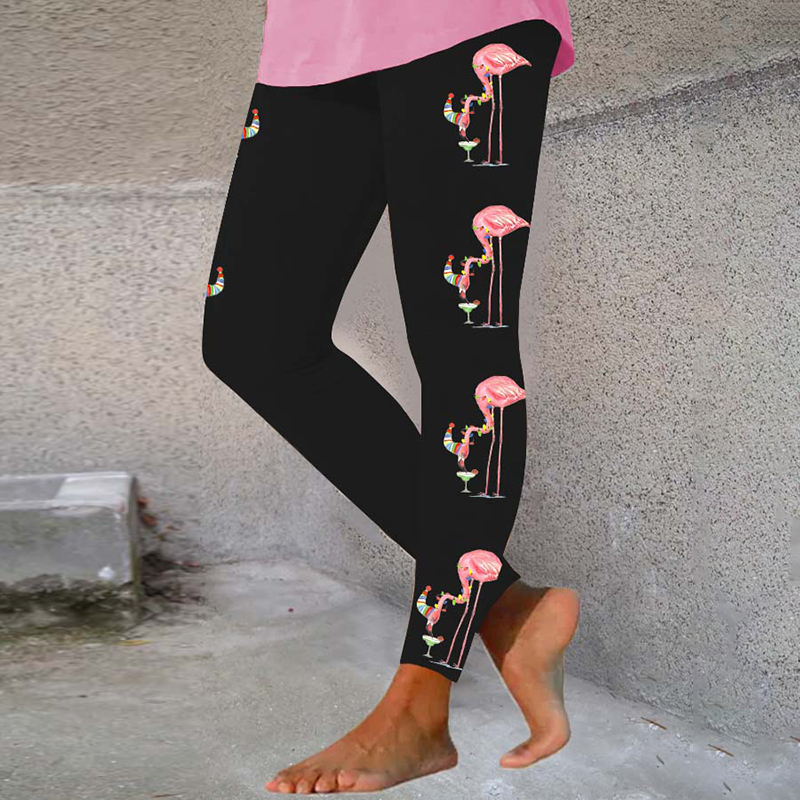 Flamingo Light Print Casual Leggings$20.79 USD