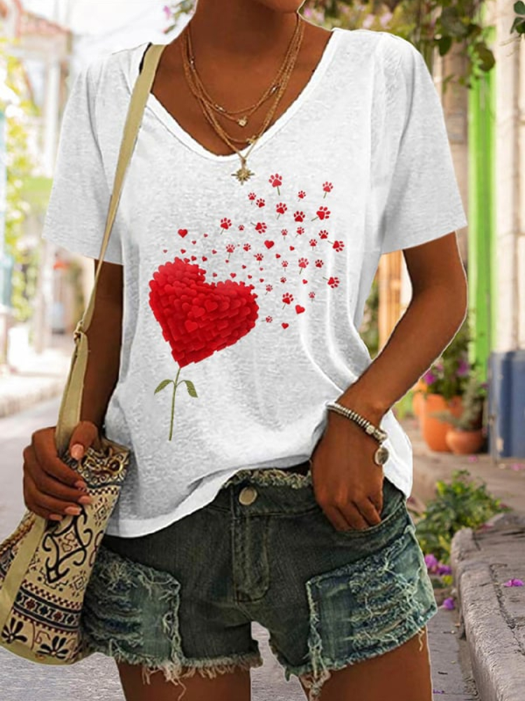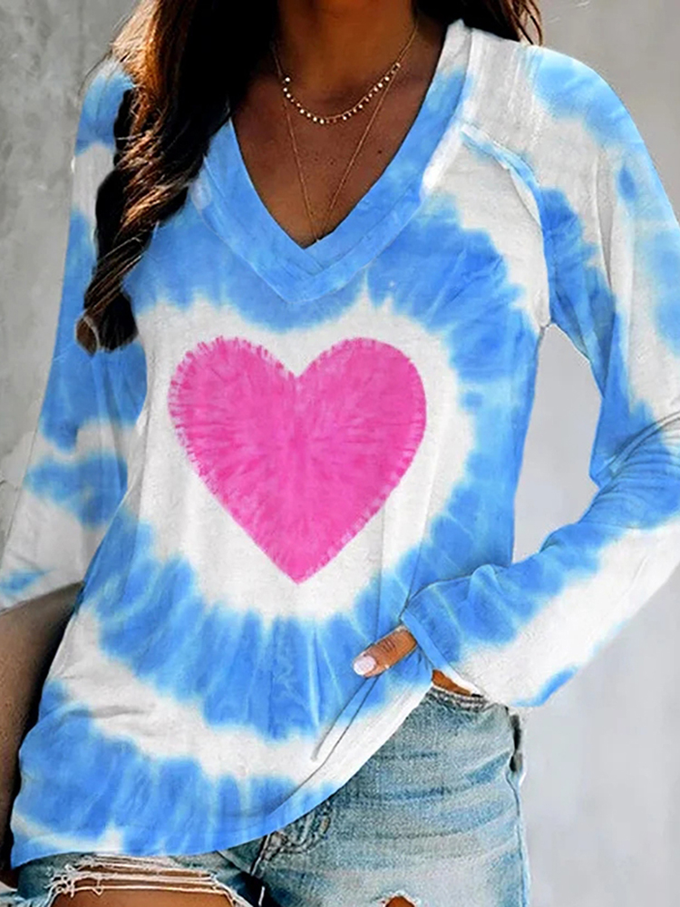 Valentine's Day Heart Tie-Dye V-Neck T-Shirt$18.39 USD