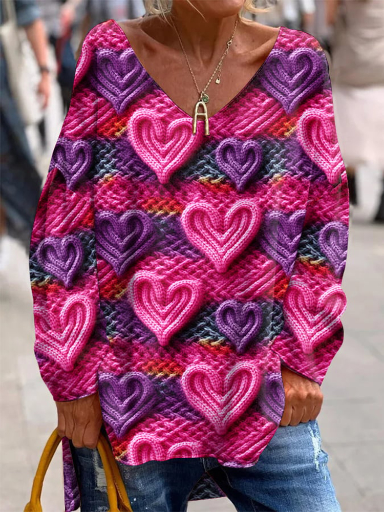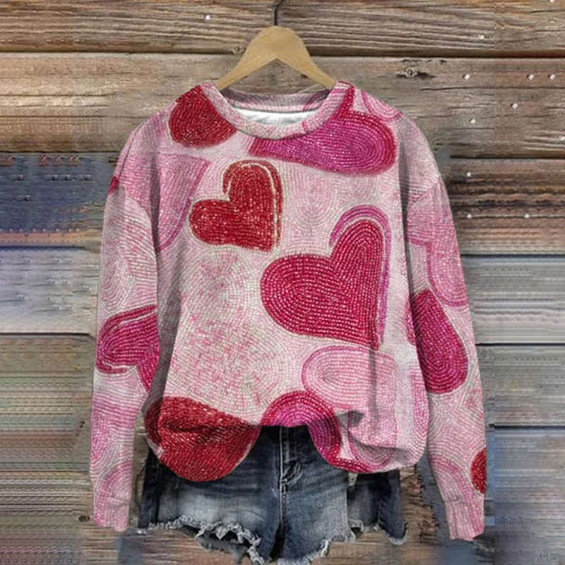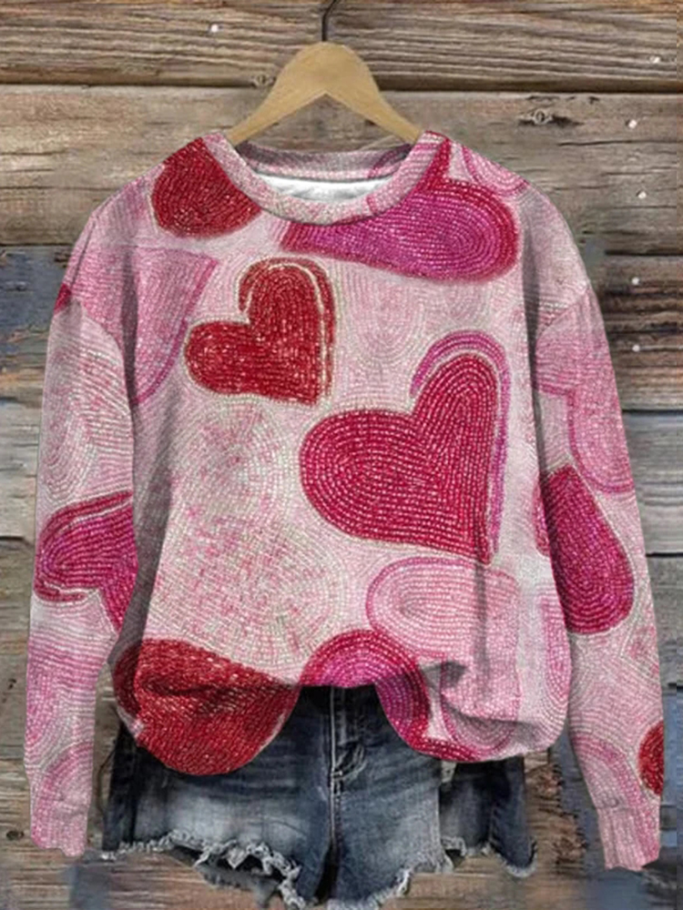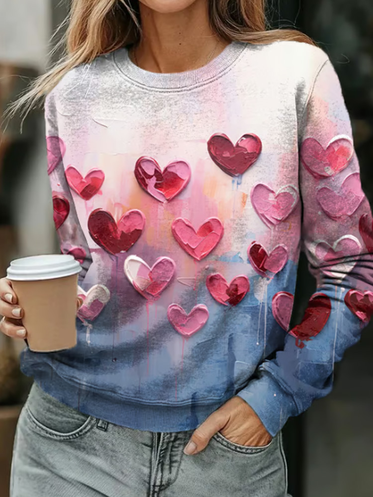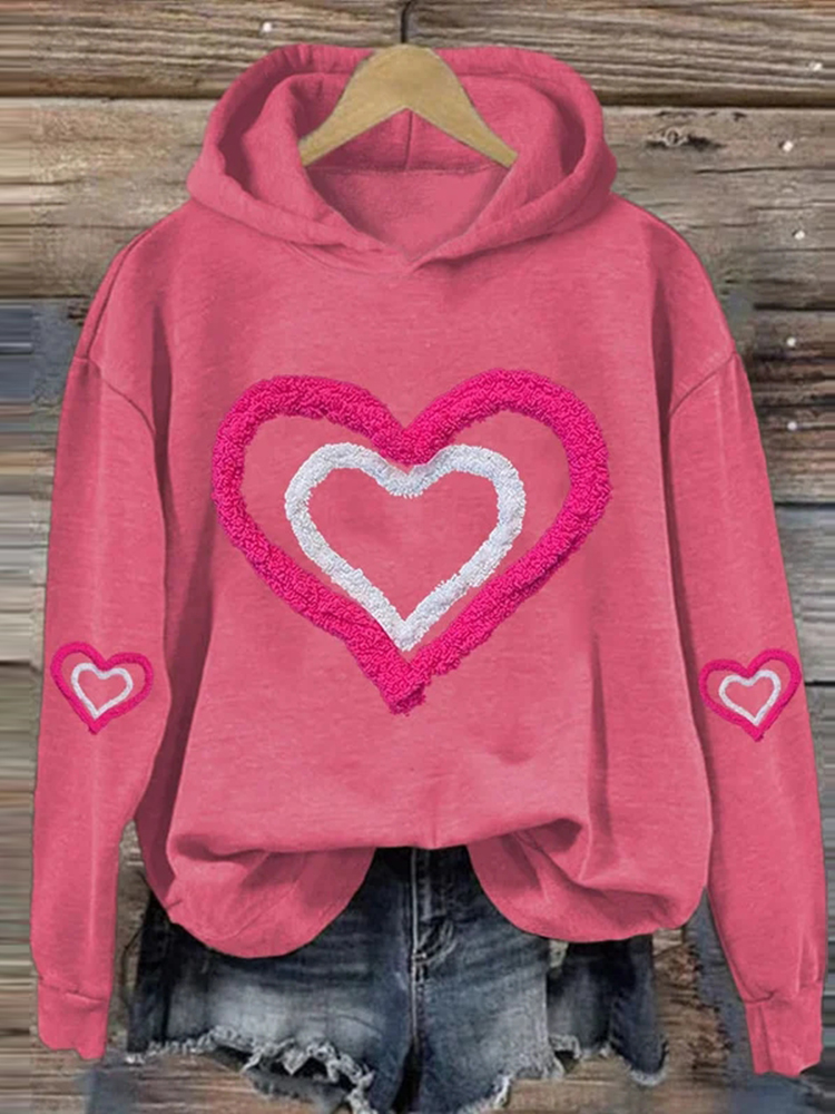 Casual Valentine's Day Heart Print Hoodie$21.59 USD