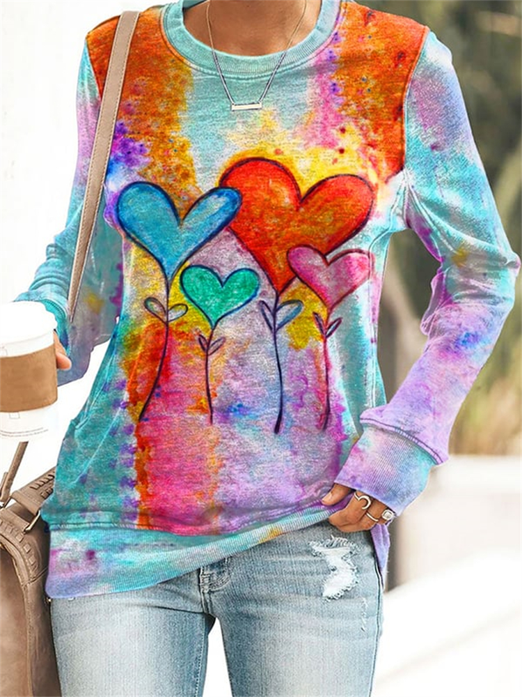 Women's Heart Floral Print Sweatshirt$20.79 USD
