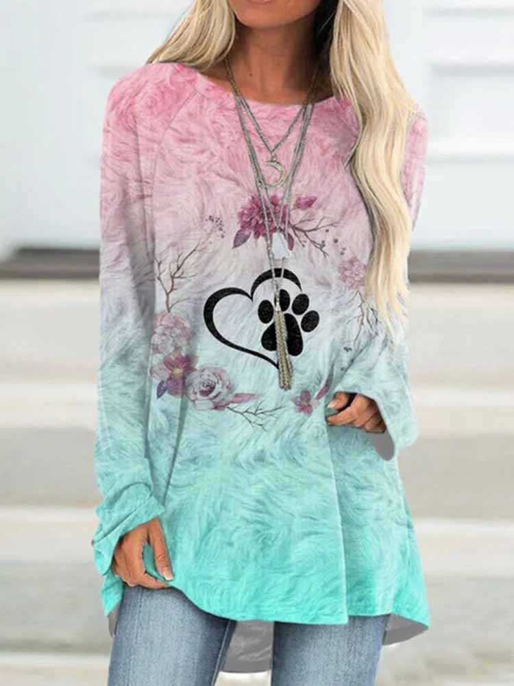 Heart Paw Ombre Long Sleeve Tunic$18.39 USD