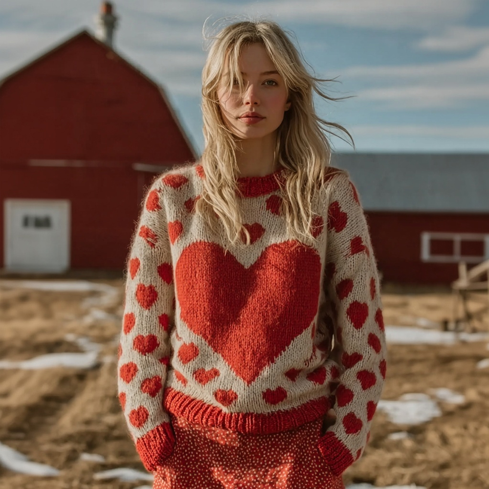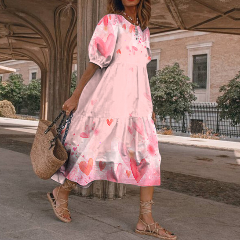 Causal Gradient Heart Print Midi Dress$30.39 USD