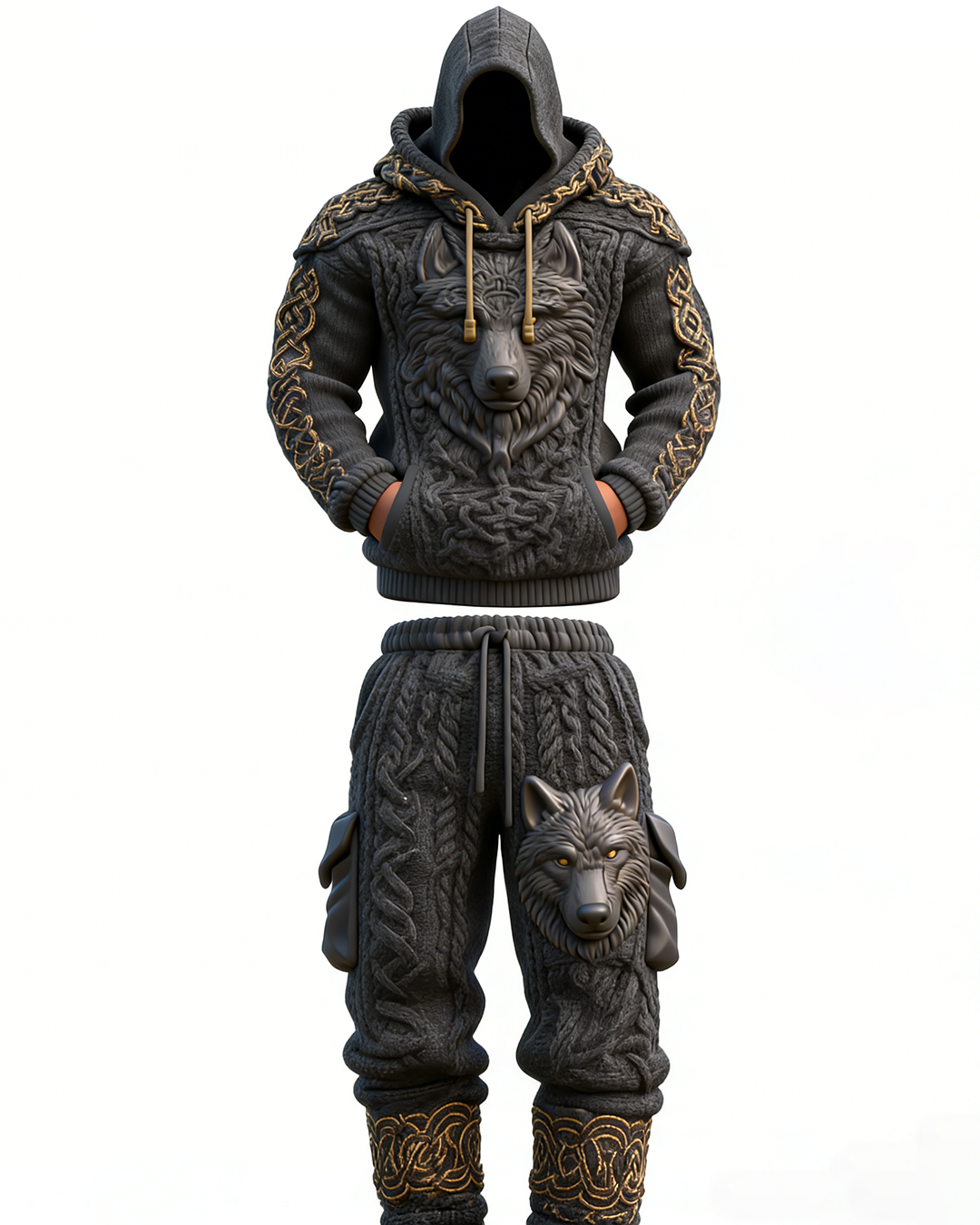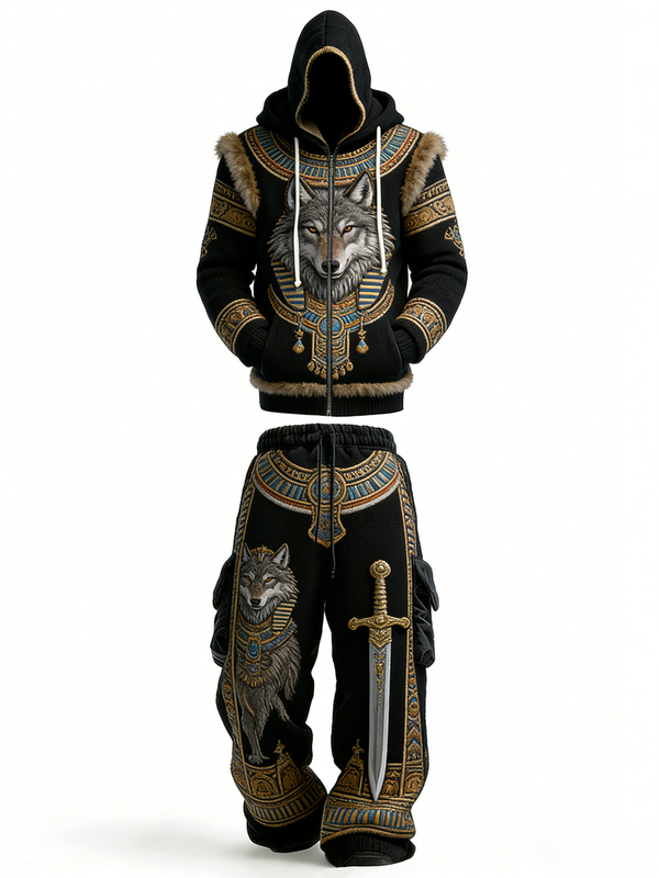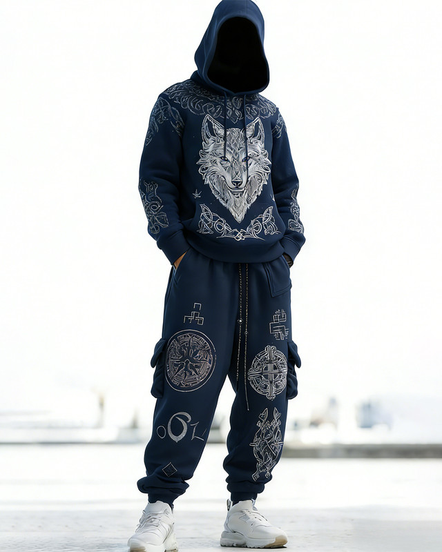 Men's Viking Wolf Embroidered Hoodie and Pants Two-Piece Set 7167$50.69 USD$82.82 USD