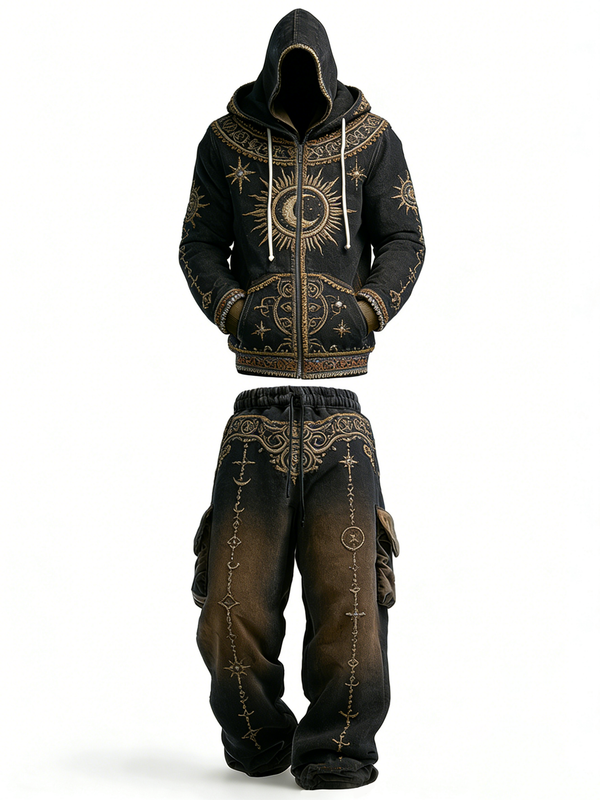 Men's Viking-themed Spartan embroidered hoodie and pants two-piece set 2189$50.69 USD$82.82 USD