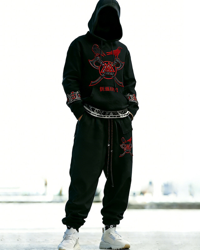 Men's Viking-themed embroidered axe hoodie and pants two-piece set 1451$50.69 USD$82.82 USD