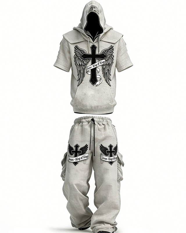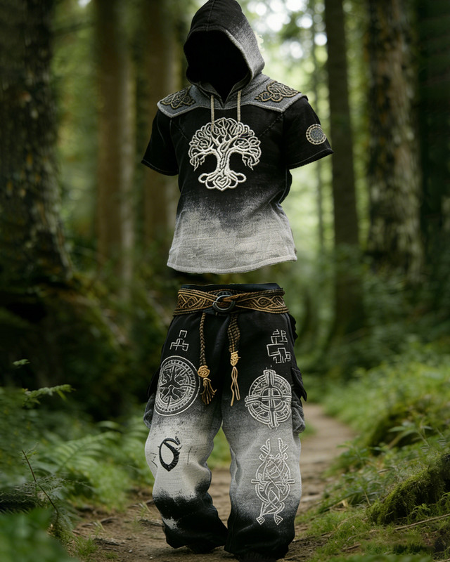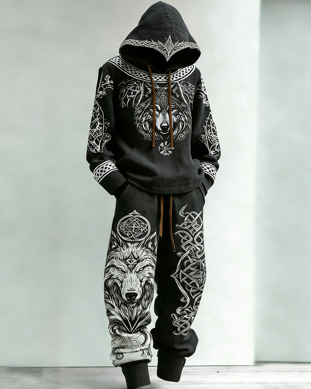 Men's Fashion Viking Linen Hooded Sweatshirt and Pants Two-Piece Set 5680$48.99 USD$84.65 USD