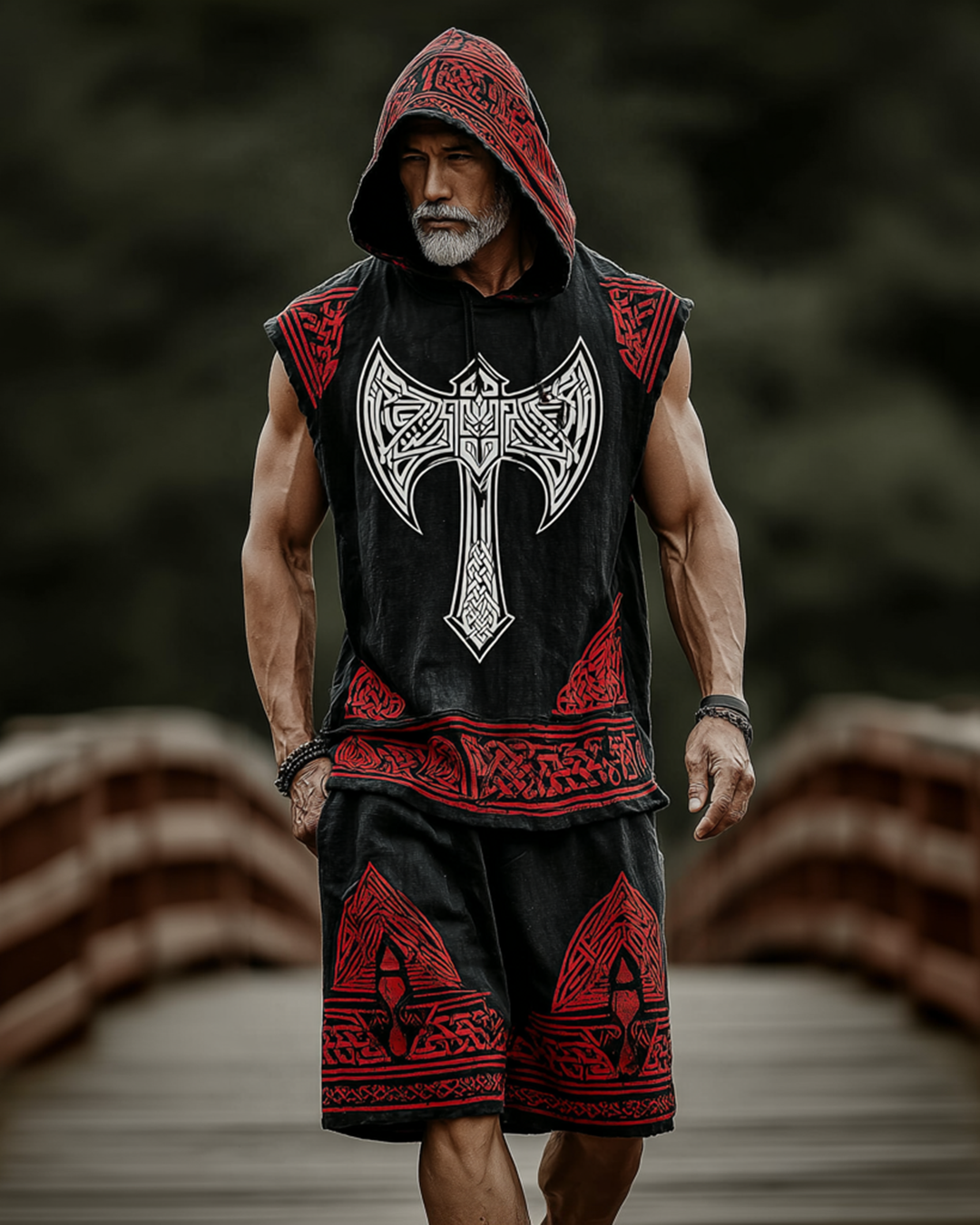 Men's Viking Color-Block Linen Sleeveless Hooded Top and Pants Two-Piece Set 3060$42.99 USD$73.32 USD