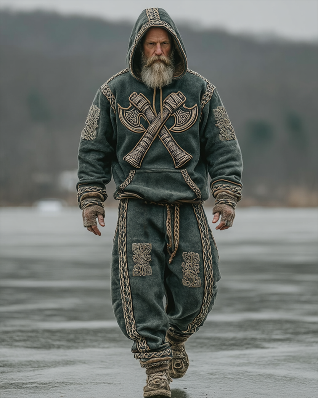 Men's Spring Viking Embroidered Hoodie and Pants Two-Piece Set 2507$49.99 USD$83.32 USD
