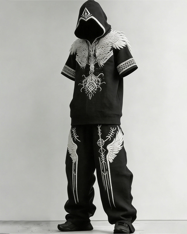 Men's Viking Contrast-Color Embroidered Hoodie and Pants Two-Piece Set 6363$49.99 USD$83.32 USD