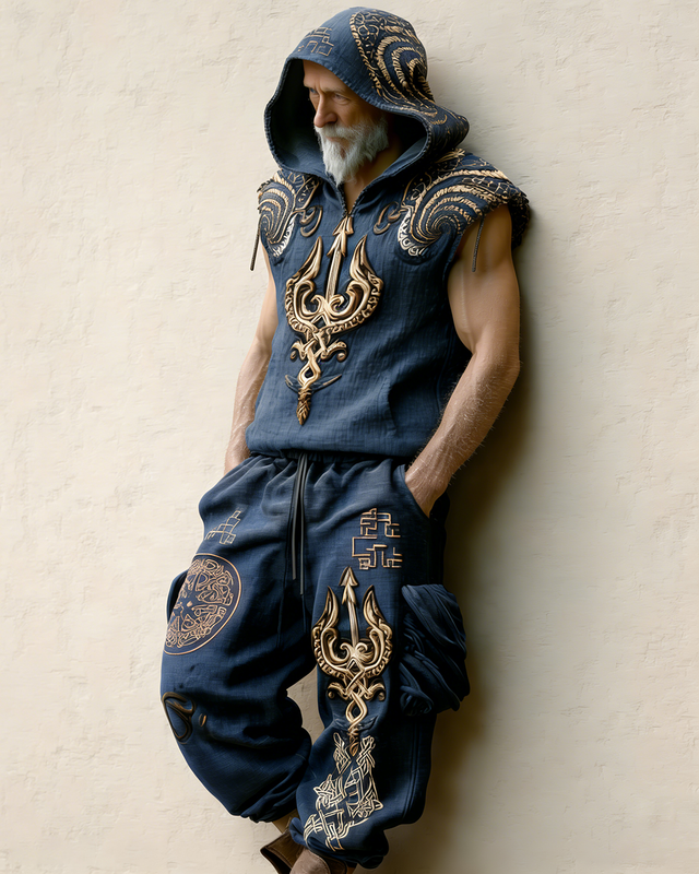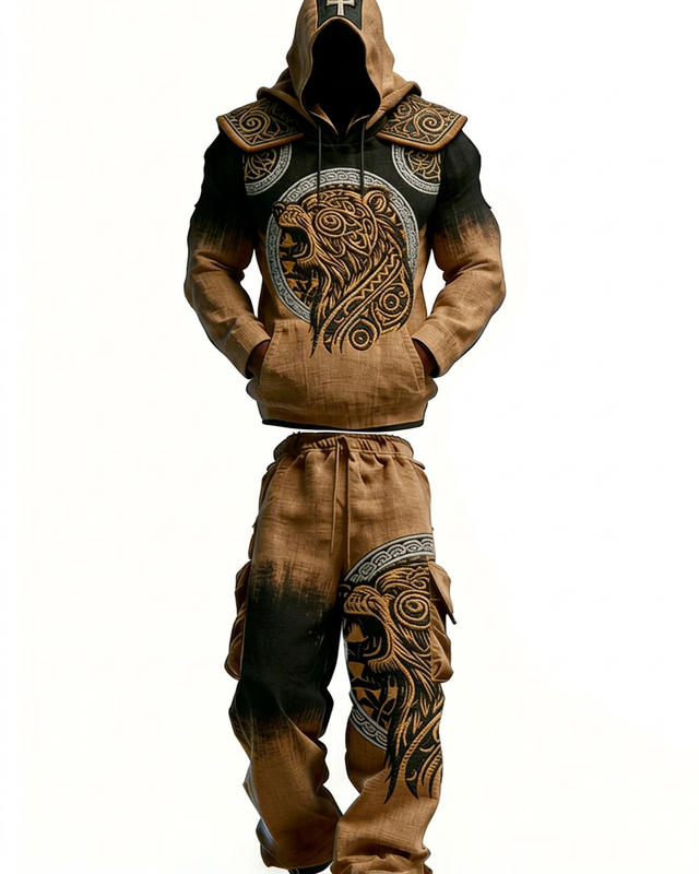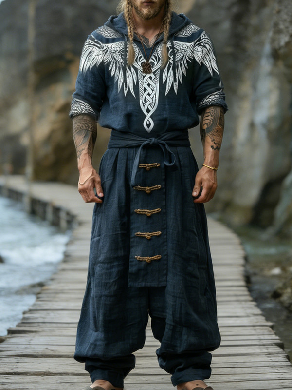 Men's Fashion Viking Linen Hooded Sweatshirt and Pants Two-Piece Set 8828$48.99 USD$84.65 USD