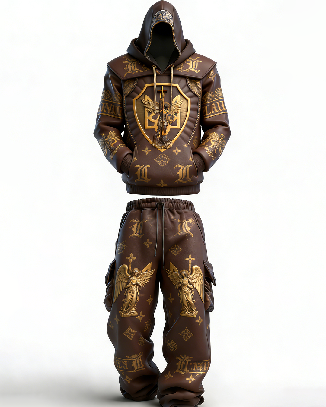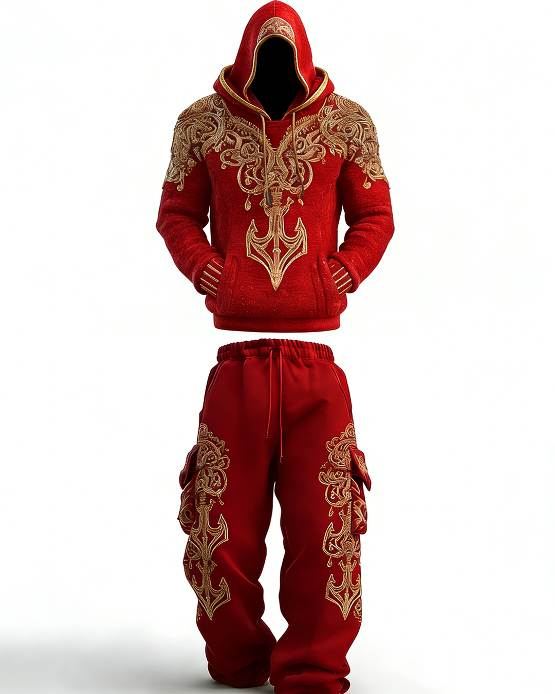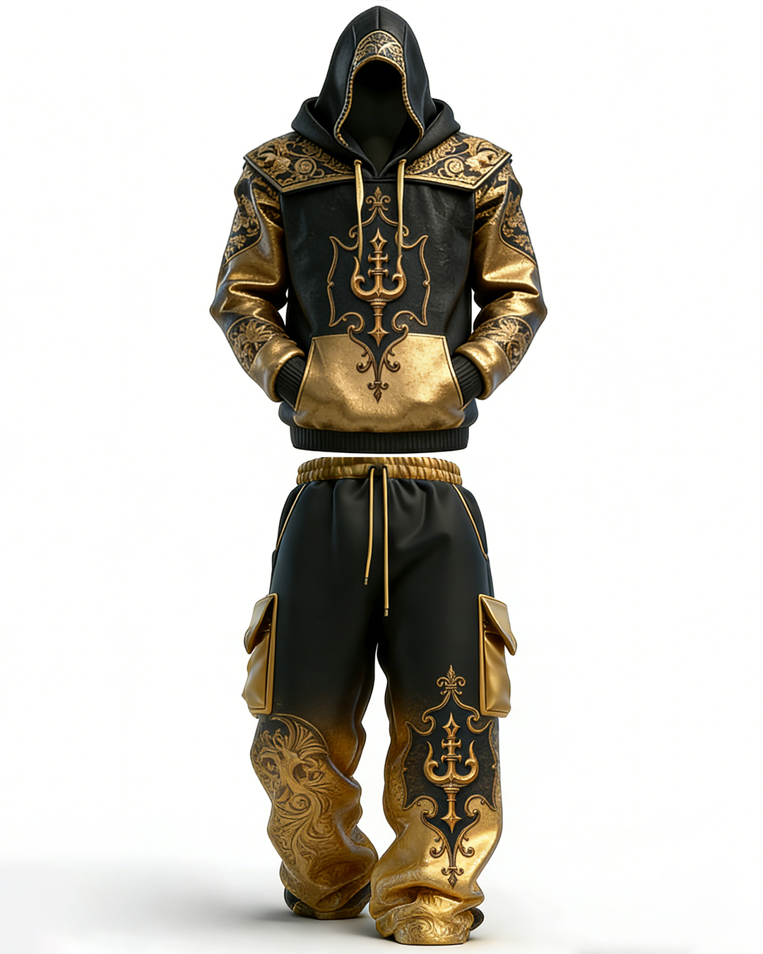 Men's Fashion Color-Block Embroidered Leather Hoodie and Pants Two-Piece Set 9531$54.99 USD$83.32 USD