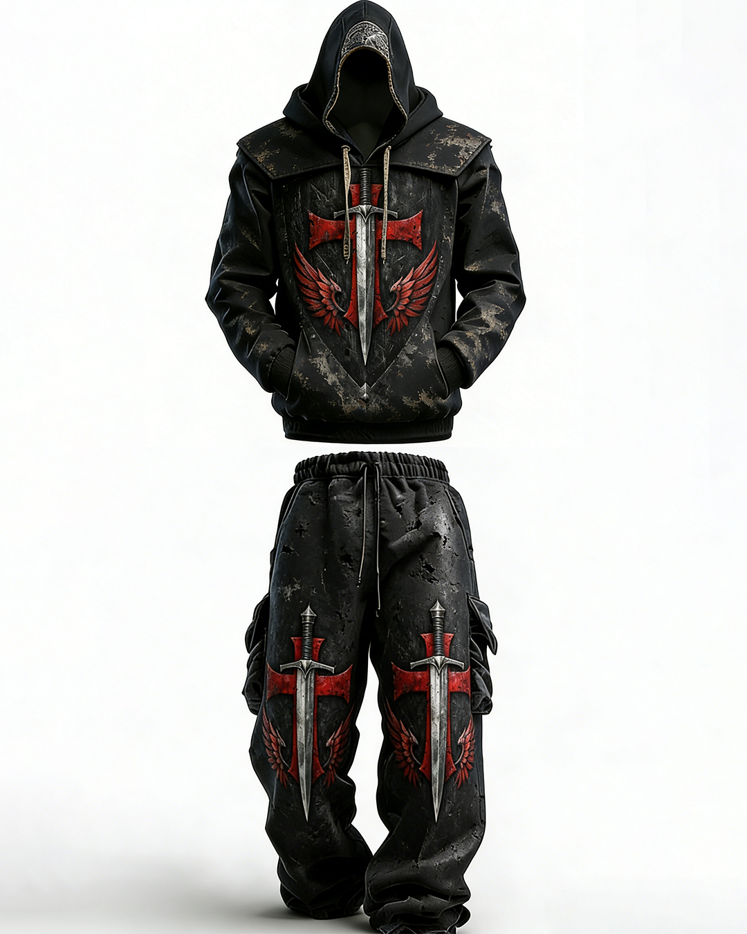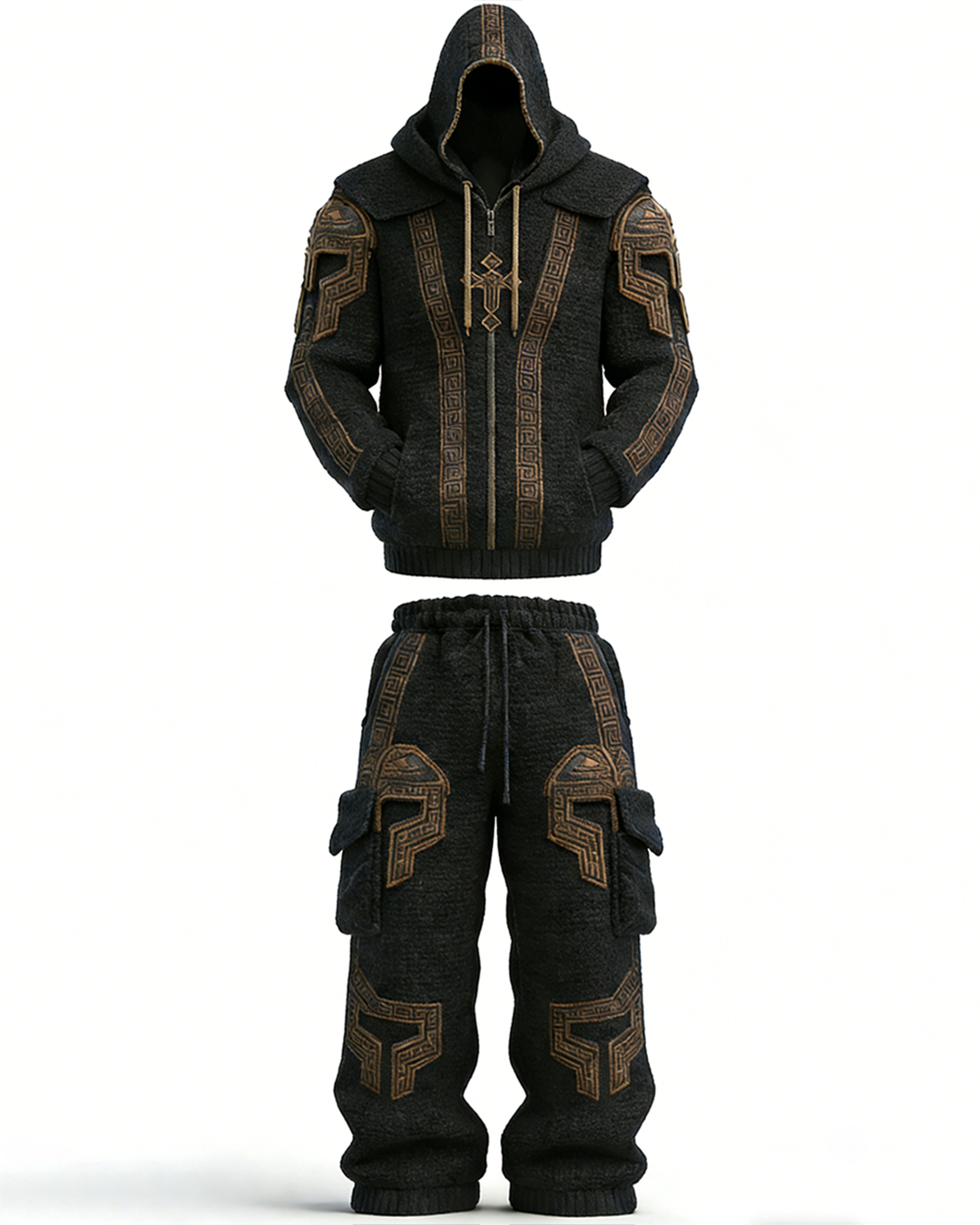 Men's Fashion Viking Linen Hoodie and Pants Two-Piece Set 1615$45.99 USD$89.98 USD