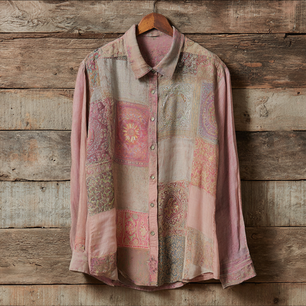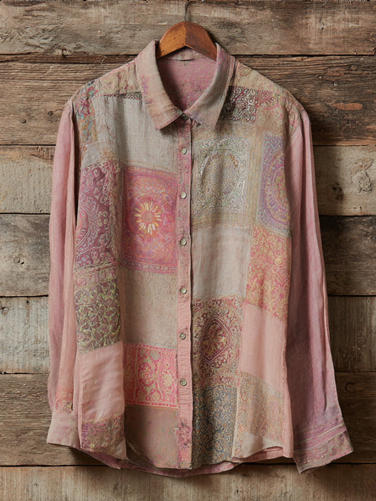 Bohème Style Patchwork Floral Cardigan Long-sleeved Button-down Shirt