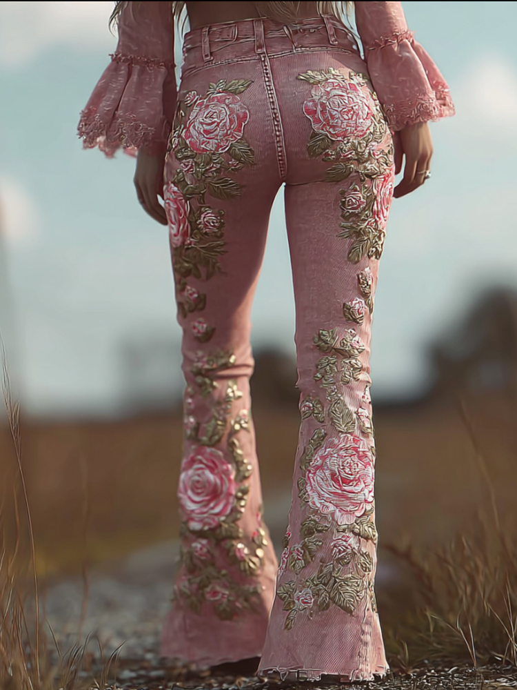 Bohemian Sexy Vintage Pink Rose Pants