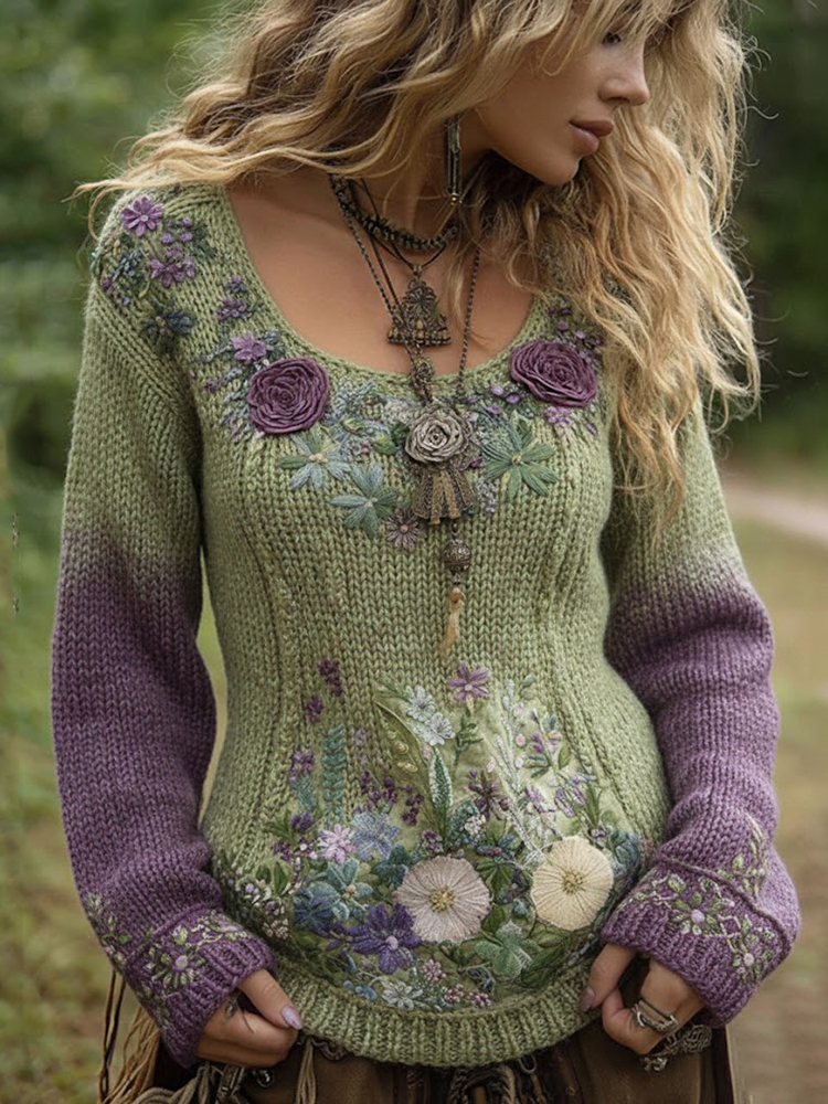 Classy Gradient Purple Lavender And Floral Embroidered Sweater