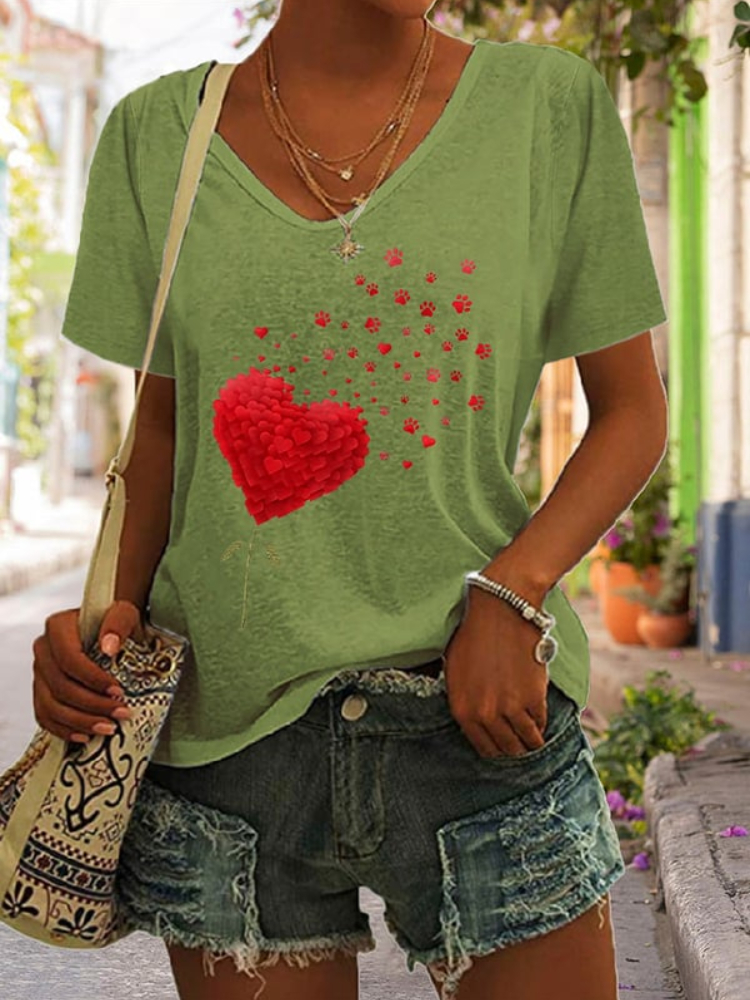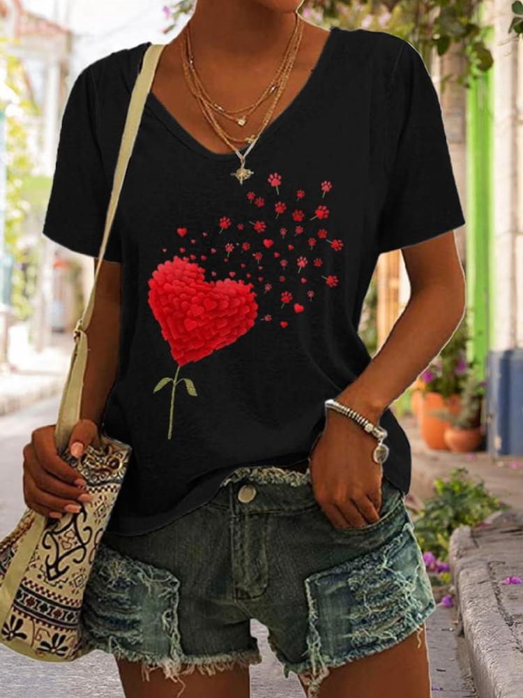 Dog Paw Flower Fly Dandelion Heart Print T Shirt