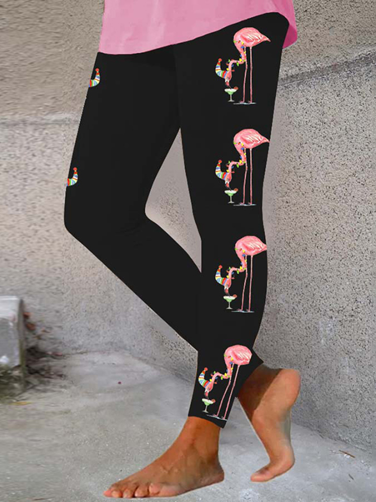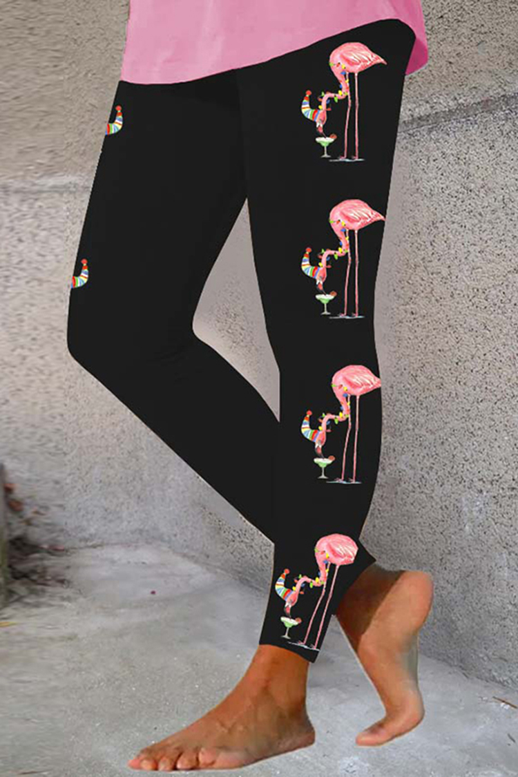 Flamingo Light Print Casual Leggings