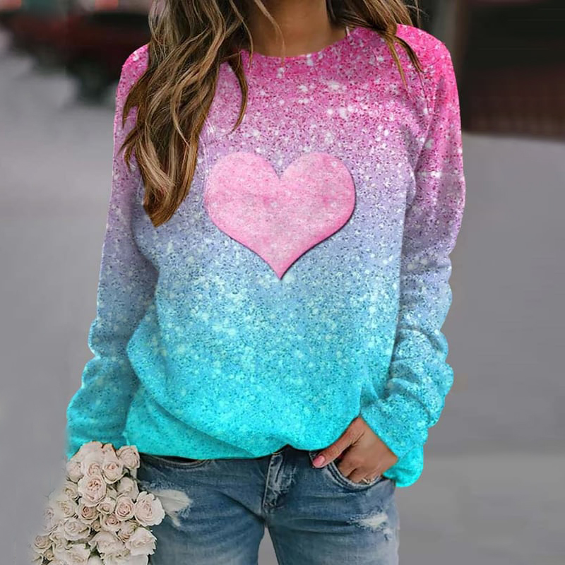 Heart Gradient Print Long Sleeve Sweatshirt