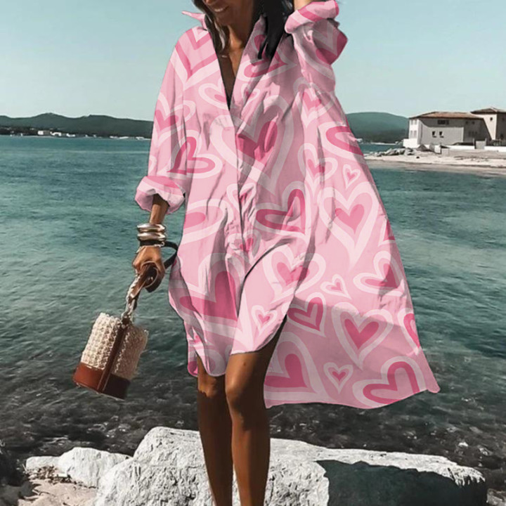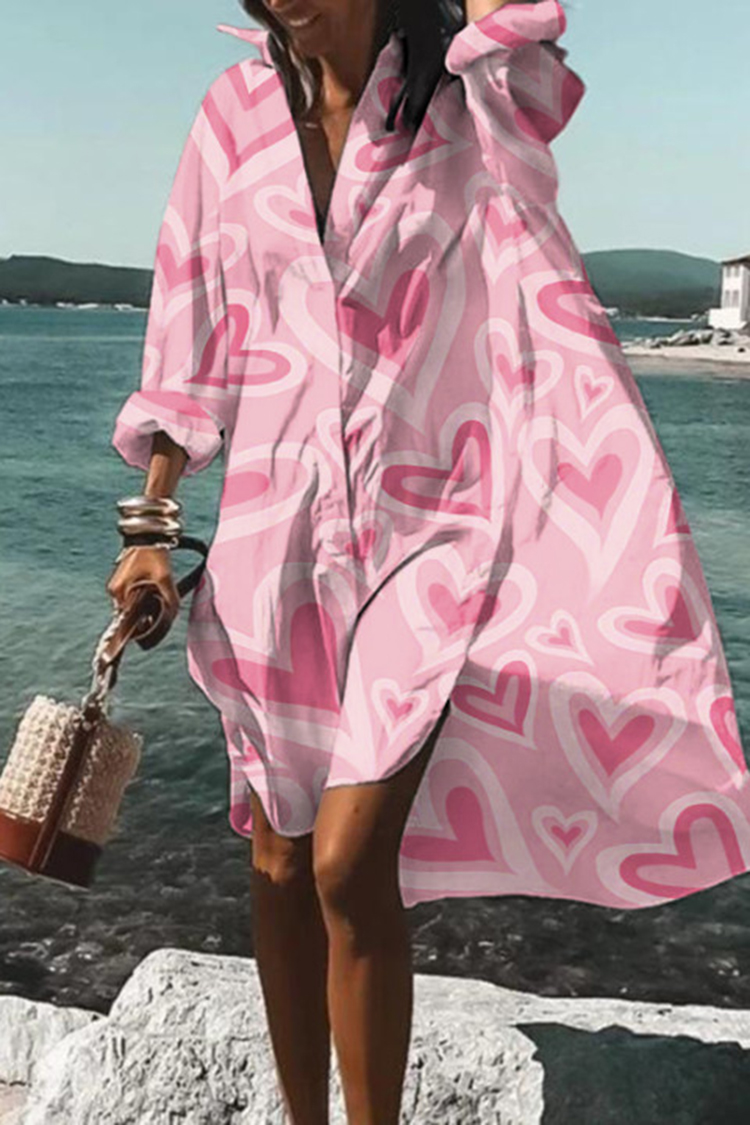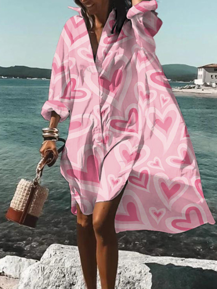 Heart Print Long Sleeve Midi Dress