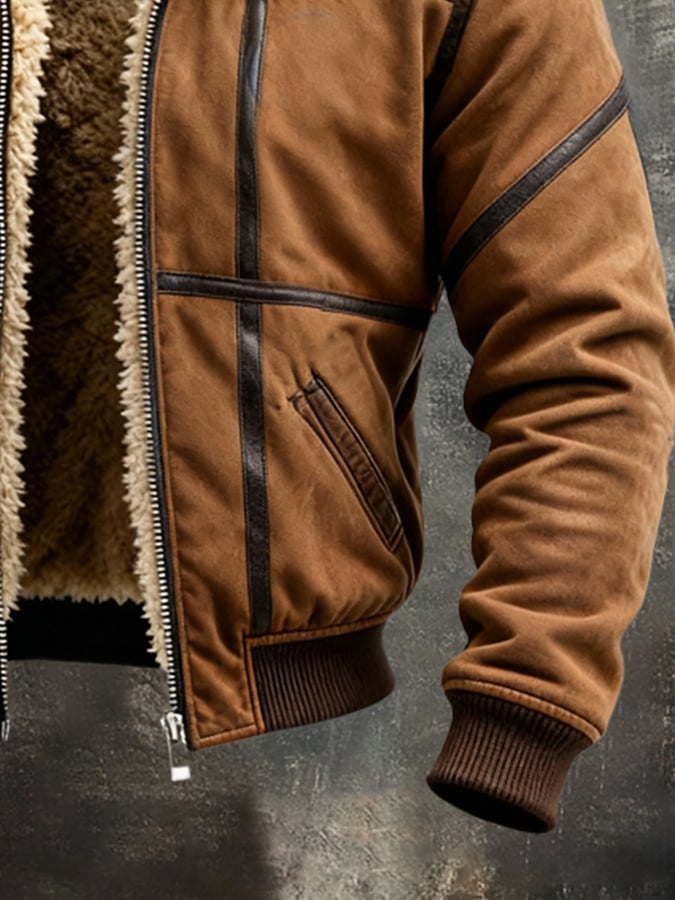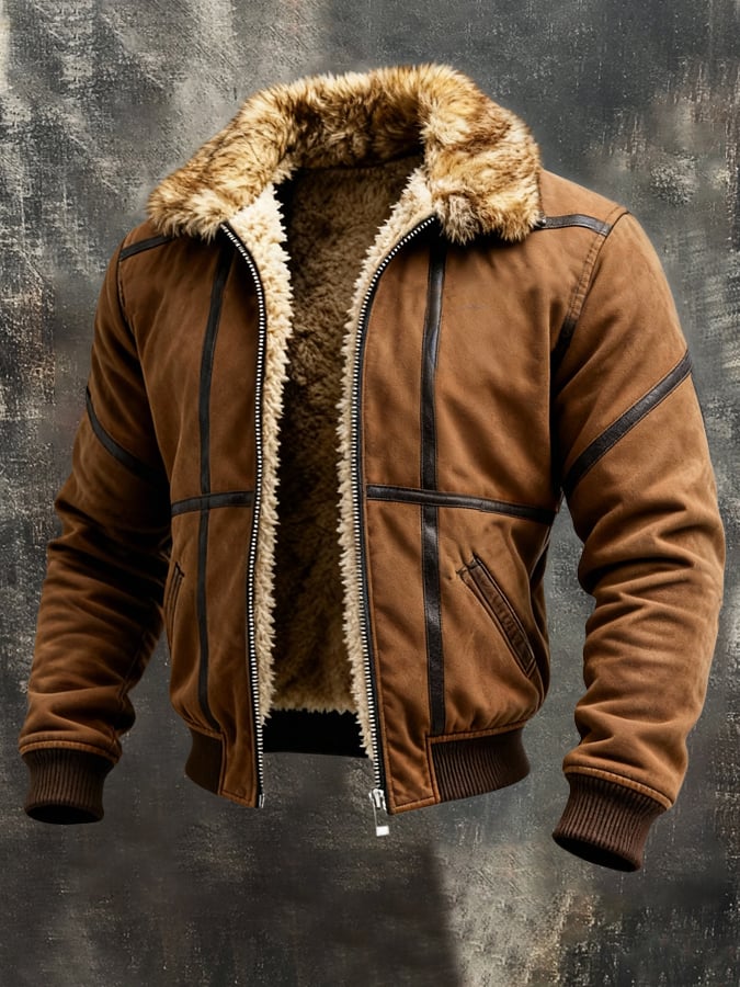 Herren-Retro-Outdoorjacke mit warmem Pelzkragen und Reißverschluss
