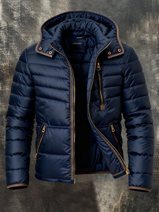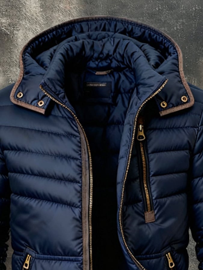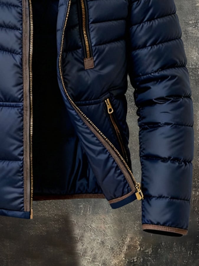 Herren Retro Warm Color Block Kapuzen-Reißverschluss Outdoor-Jacke Mantel