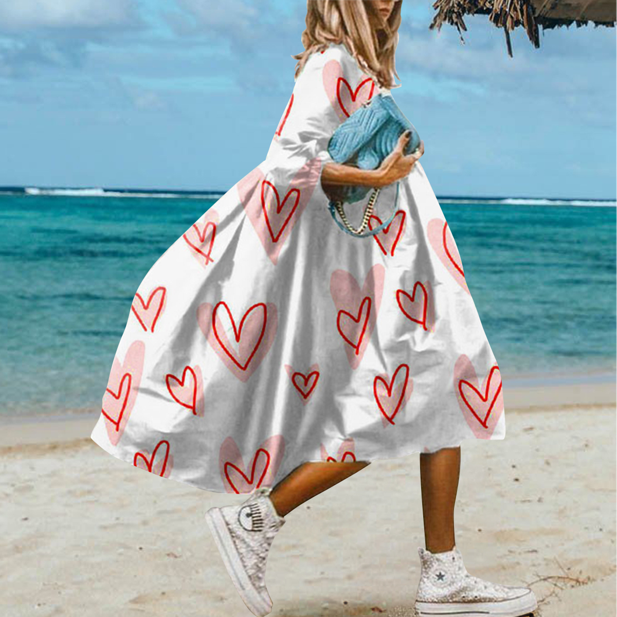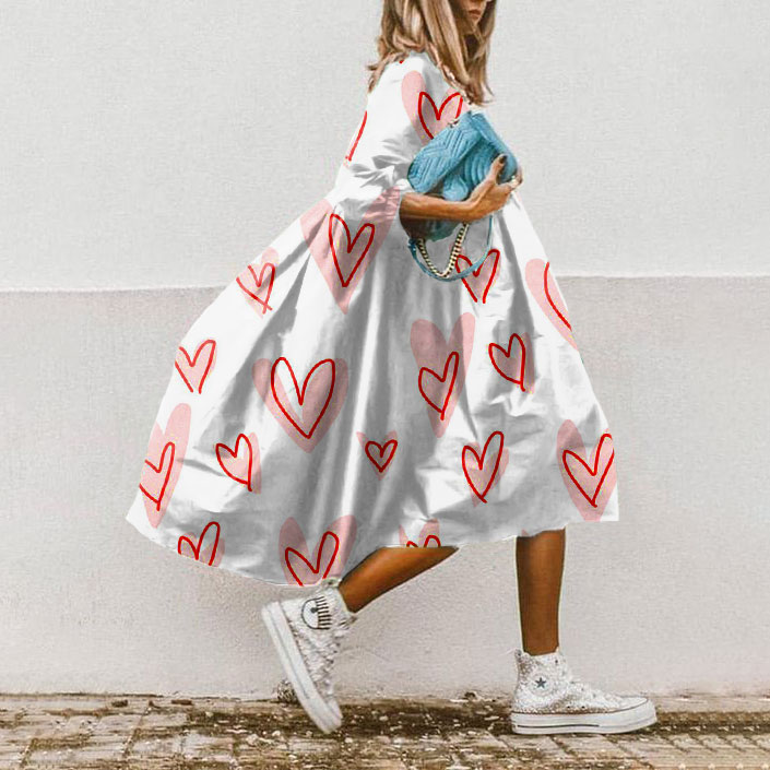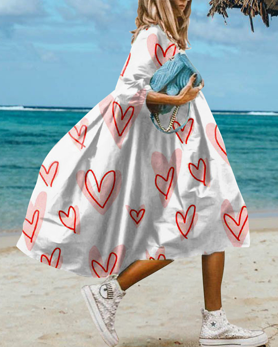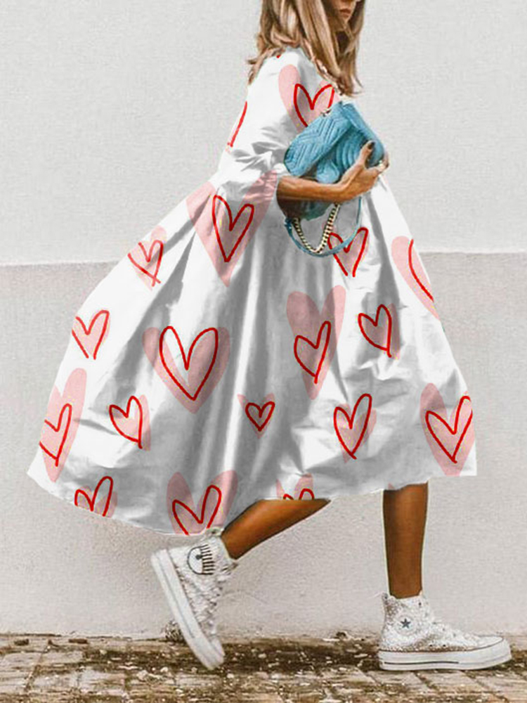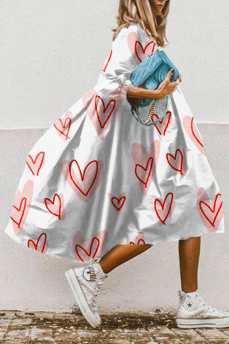 Loose Hand-Painted Heart Print Midi Dress