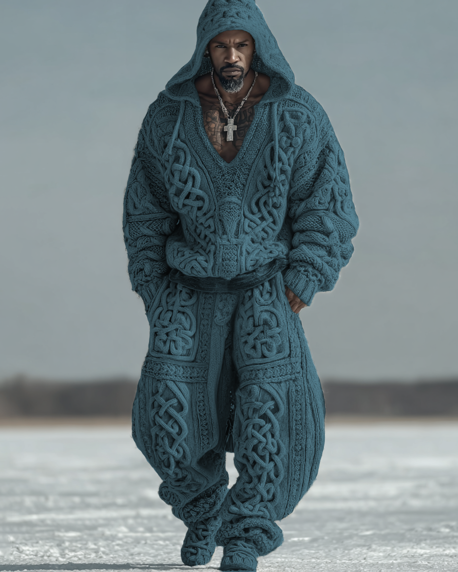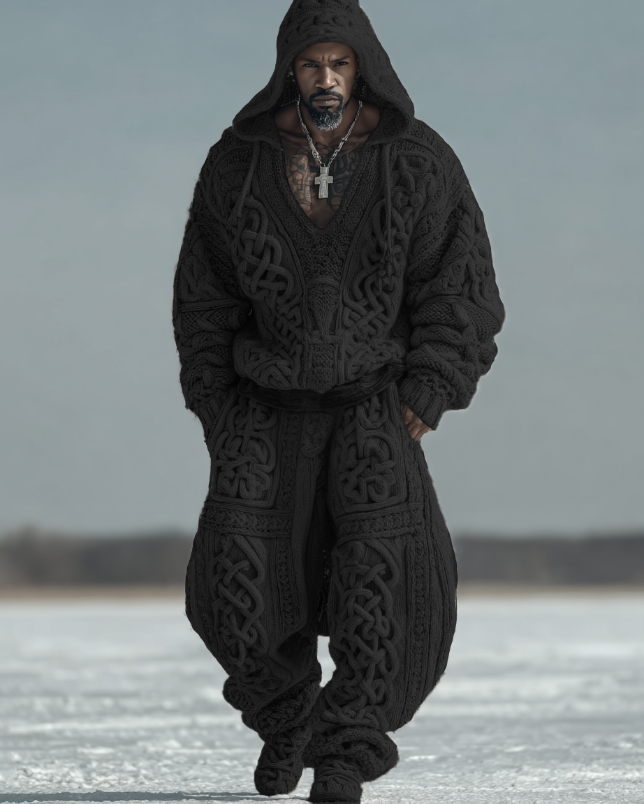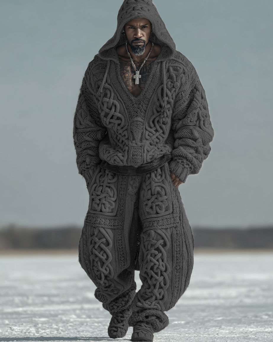 Men's Autumn and Winter Viking Hooded Two Piece Set 2399