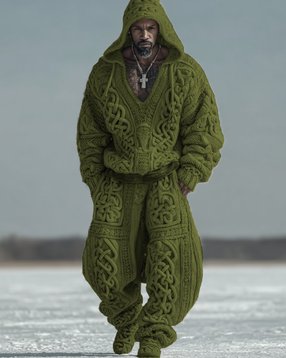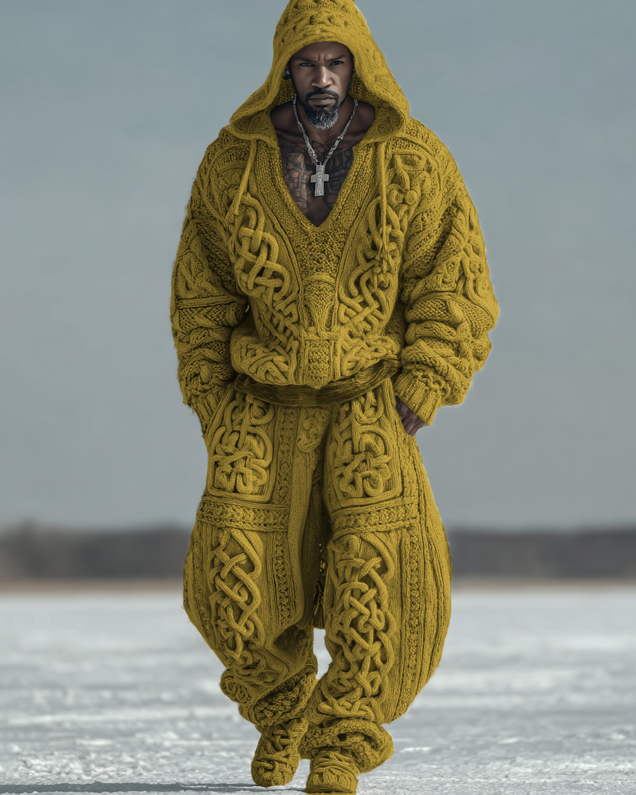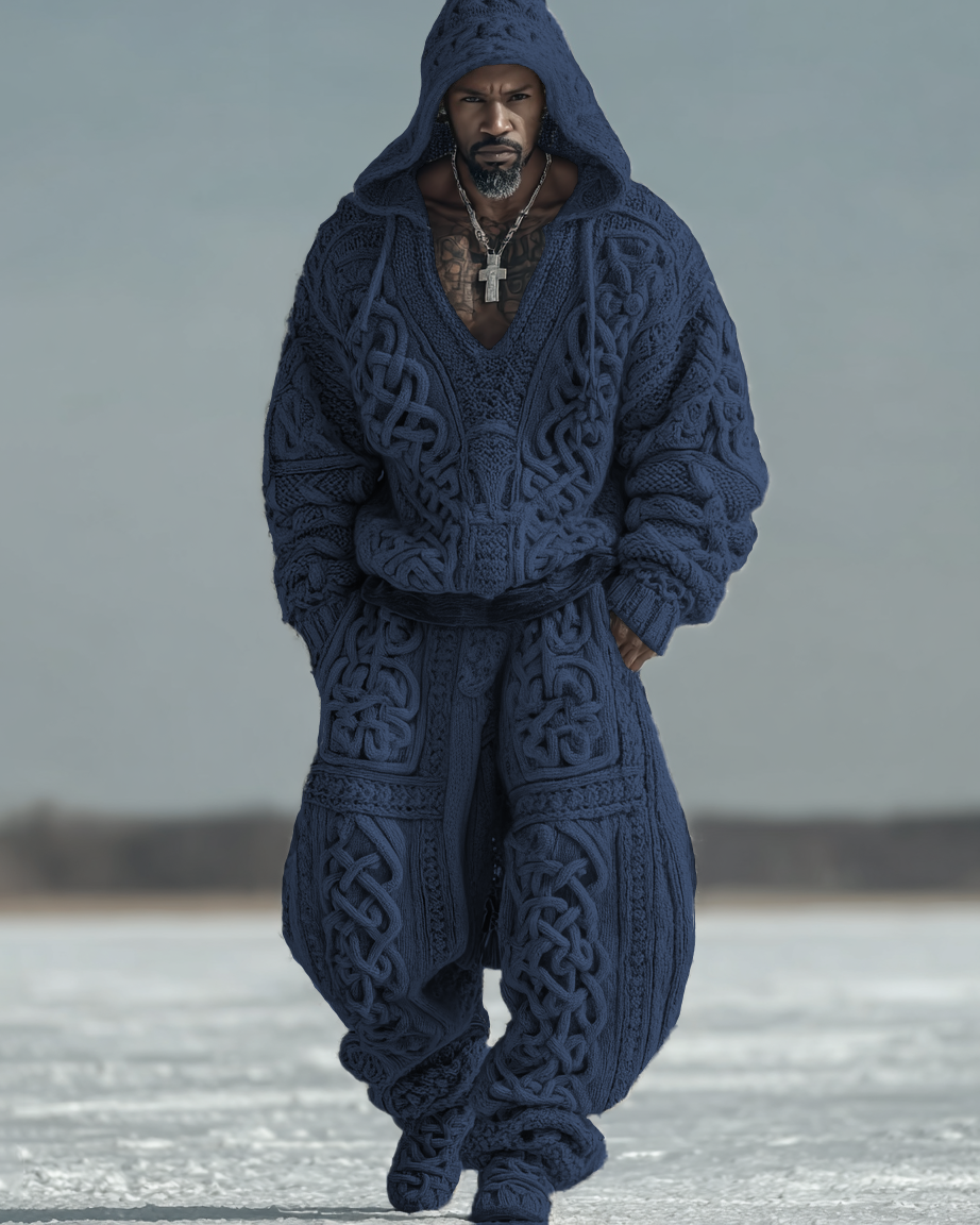 Men's Autumn and Winter Viking Hooded Two Piece Set 2399