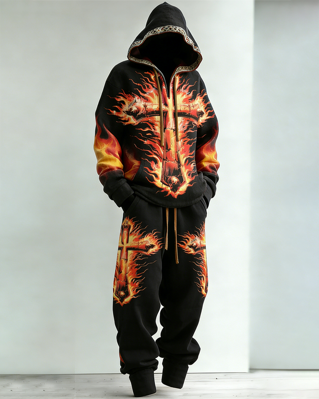 Men's Viking Contrast-Color Embroidered Hoodie and Pants Two-Piece Set 6363